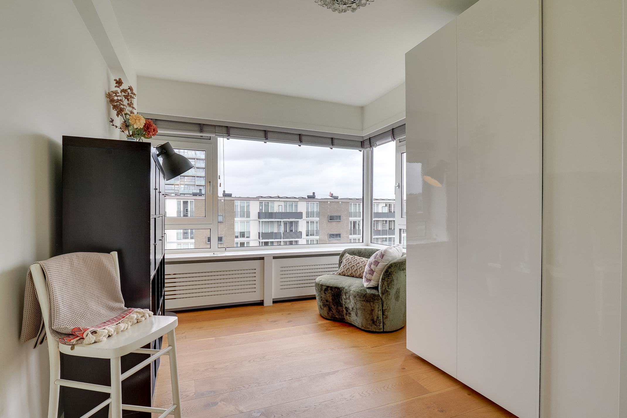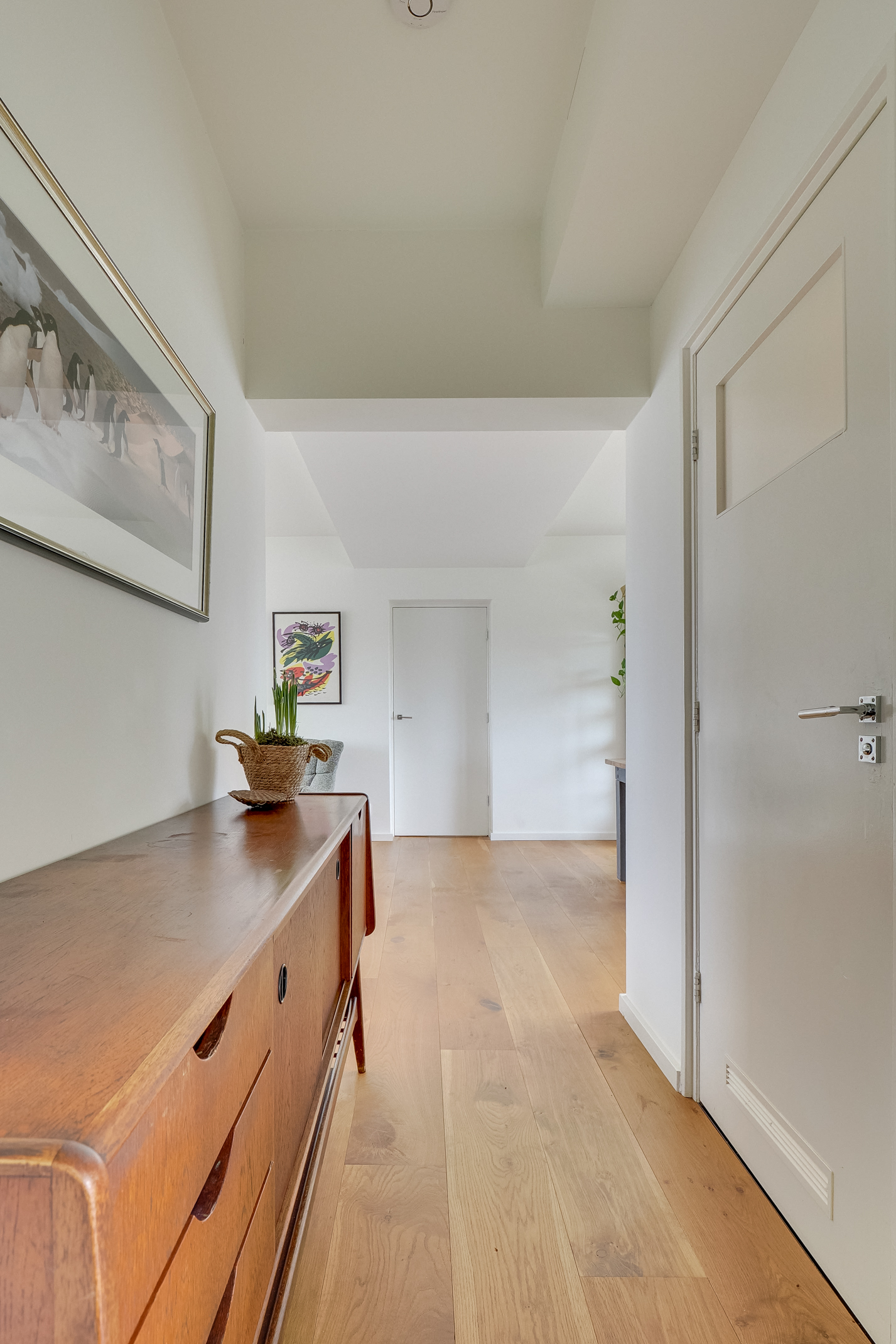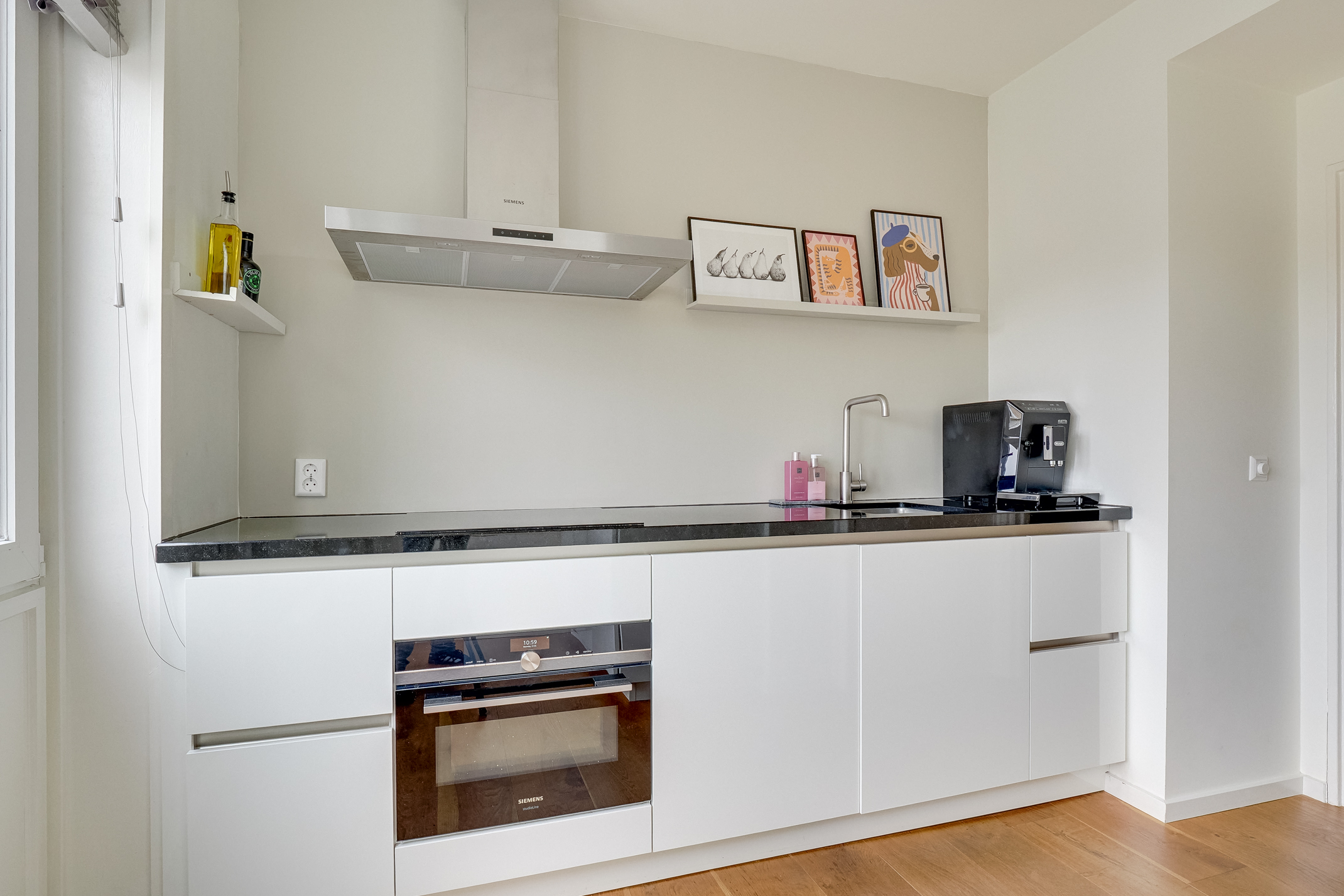 De woning beschikt over een praktische en comfortabele indeling met lichte leefruimtes en een prettige sfeer. De afwerking is verzorgd met strak gestucte wanden en een doorlopende houten parketvloer. De moderne keuken is voorzien van Siemens apparatuur, wat zorgt voor extra comfort in het dagelijks gebruik.