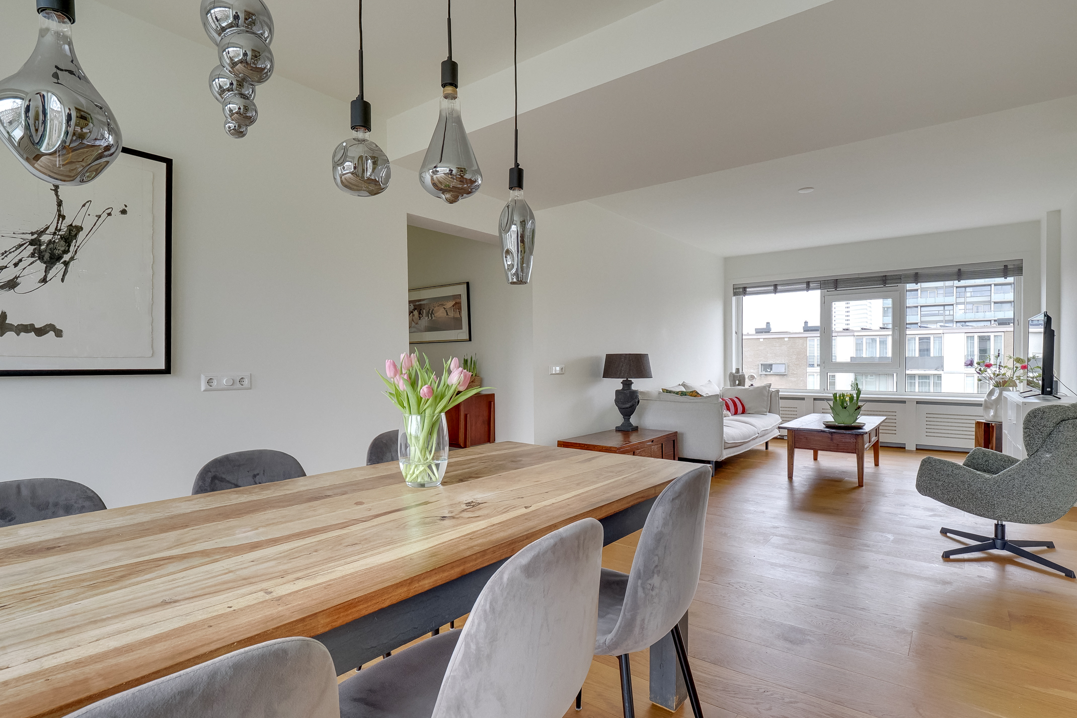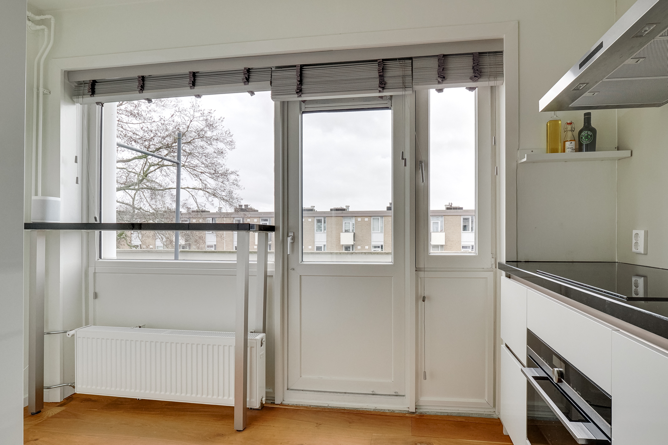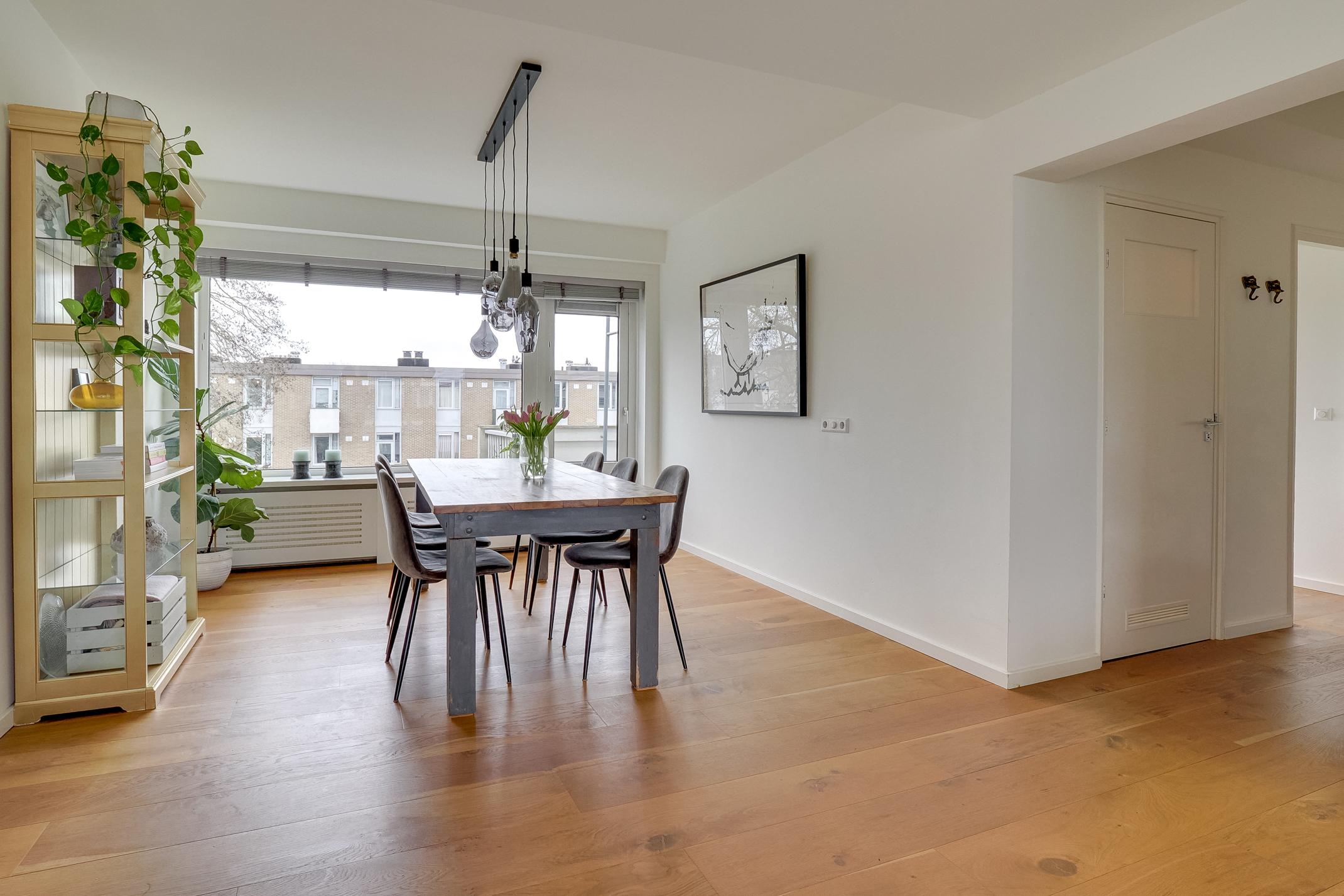 De woning beschikt over een praktische en comfortabele indeling met lichte leefruimtes en een prettige sfeer. De afwerking is verzorgd met strak gestucte wanden en een doorlopende houten parketvloer. De moderne keuken is voorzien van Siemens apparatuur, wat zorgt voor extra comfort in het dagelijks gebruik.