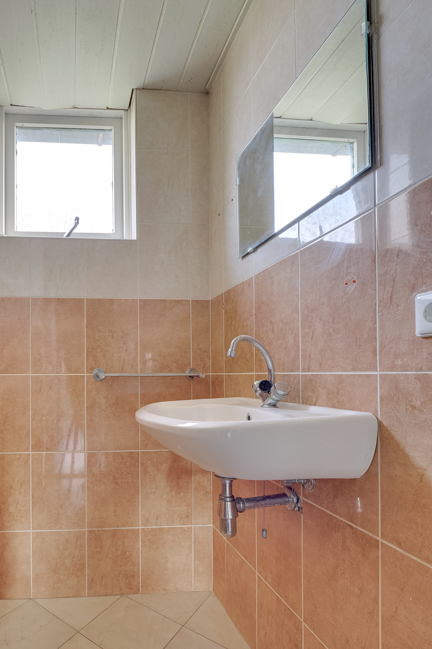 Op de eerste verdieping zijn drie slaapkamers en de badkamer. De kamers zijn goed in te delen als slaap-, kinder- of werkkamer. De badkamer is eenvoudig maar praktisch. Met een update maak je hier vrij makkelijk een moderne badkamer van die past bij de rest van het huis.