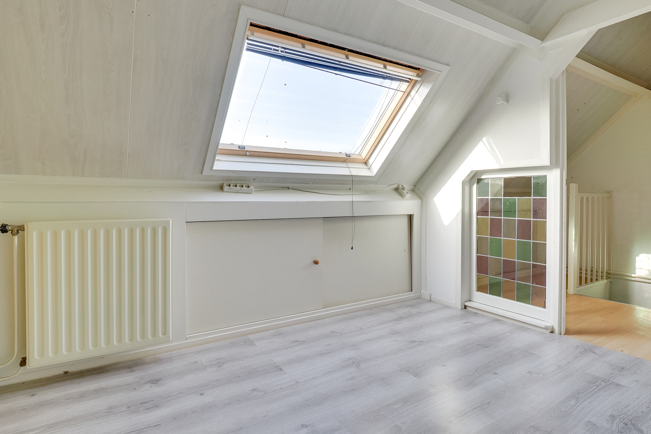 Via een vaste trap kom je op de zolder. Hier is een overloop en een vierde slaapkamer met dakraam. Deze ruimte kan dienen als slaapkamer, werkplek of hobbykamer. Achter de knieschotten is extra bergruimte aanwezig.