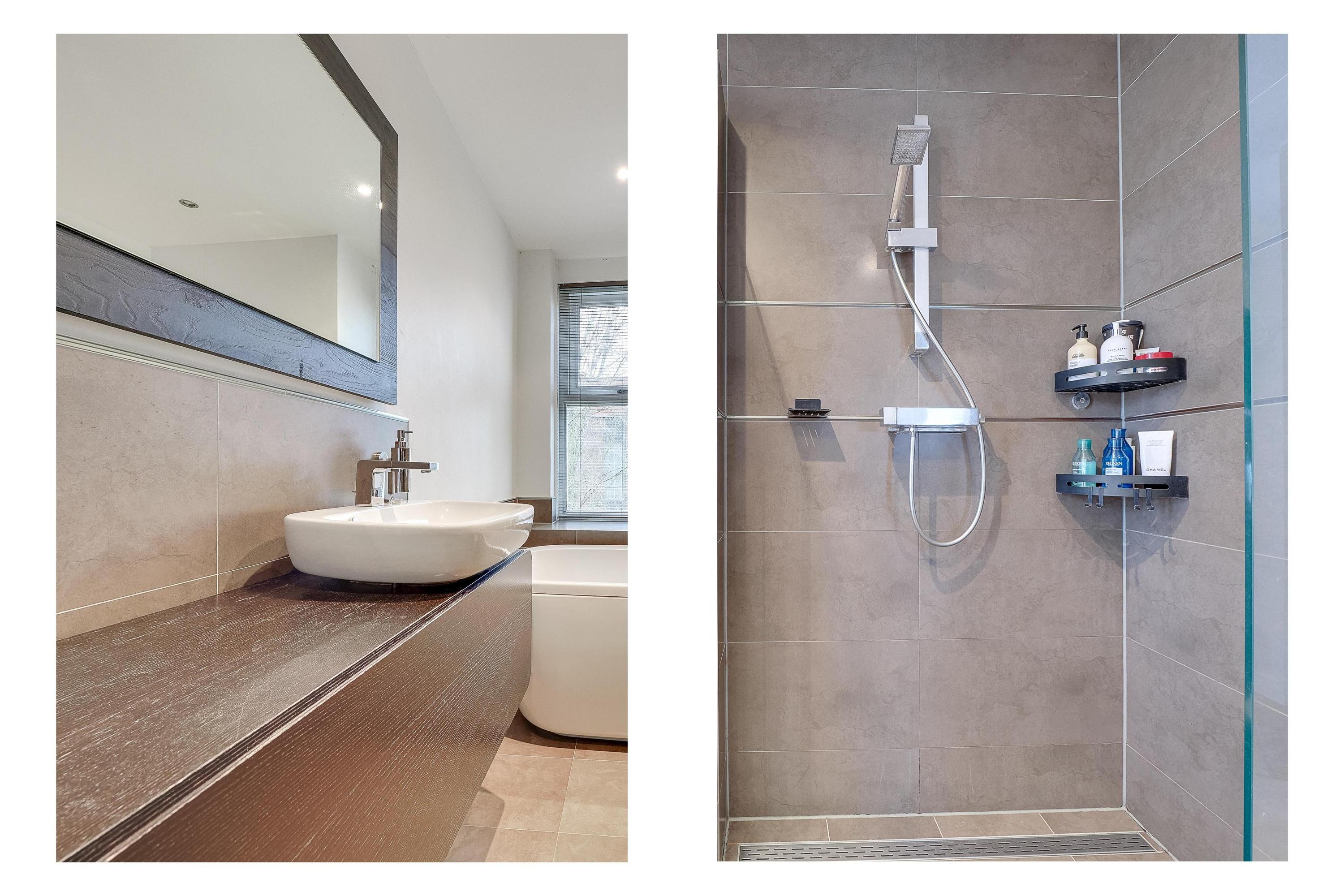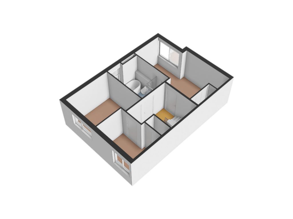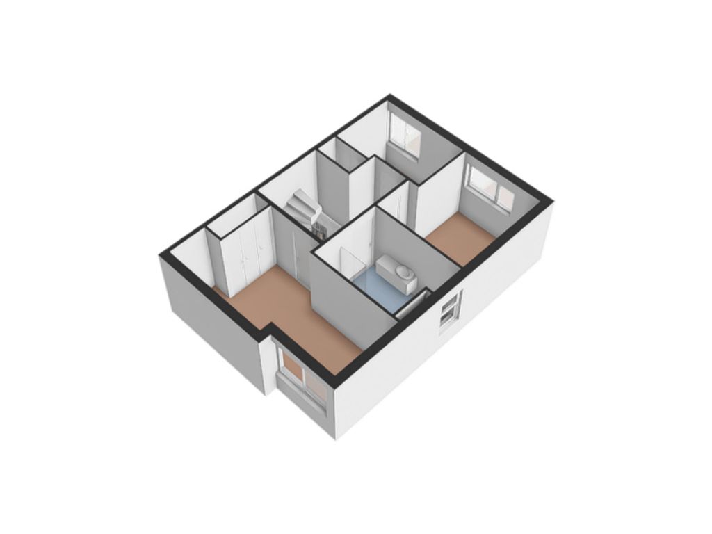 Deze verdieping bestaat uit drie ruime slaapkamers en een moderne badkamer met een comfortabel bad, inloopdouche, wastafelmeubel en toilet. De kamers kunnen flexibel worden ingericht als kinderkamers, thuiskantoor of logeerkamer.