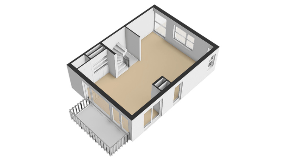 Via de entree met hal, toilet en trapopgang bereikt u een aparte ruimte aan de voorzijde. Deze ruimte is perfect als thuiskantoor, speelkamer of extra slaapkamer.