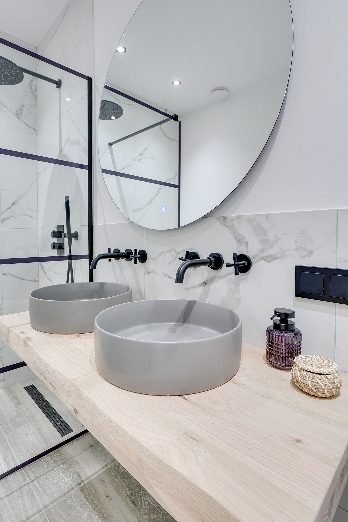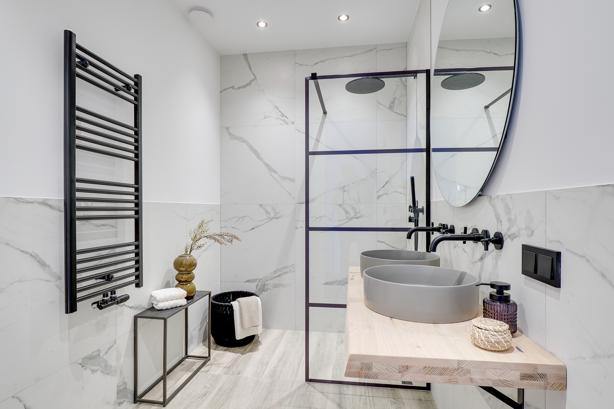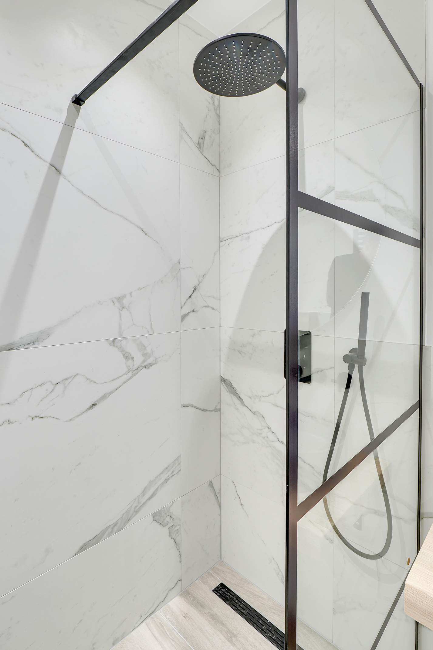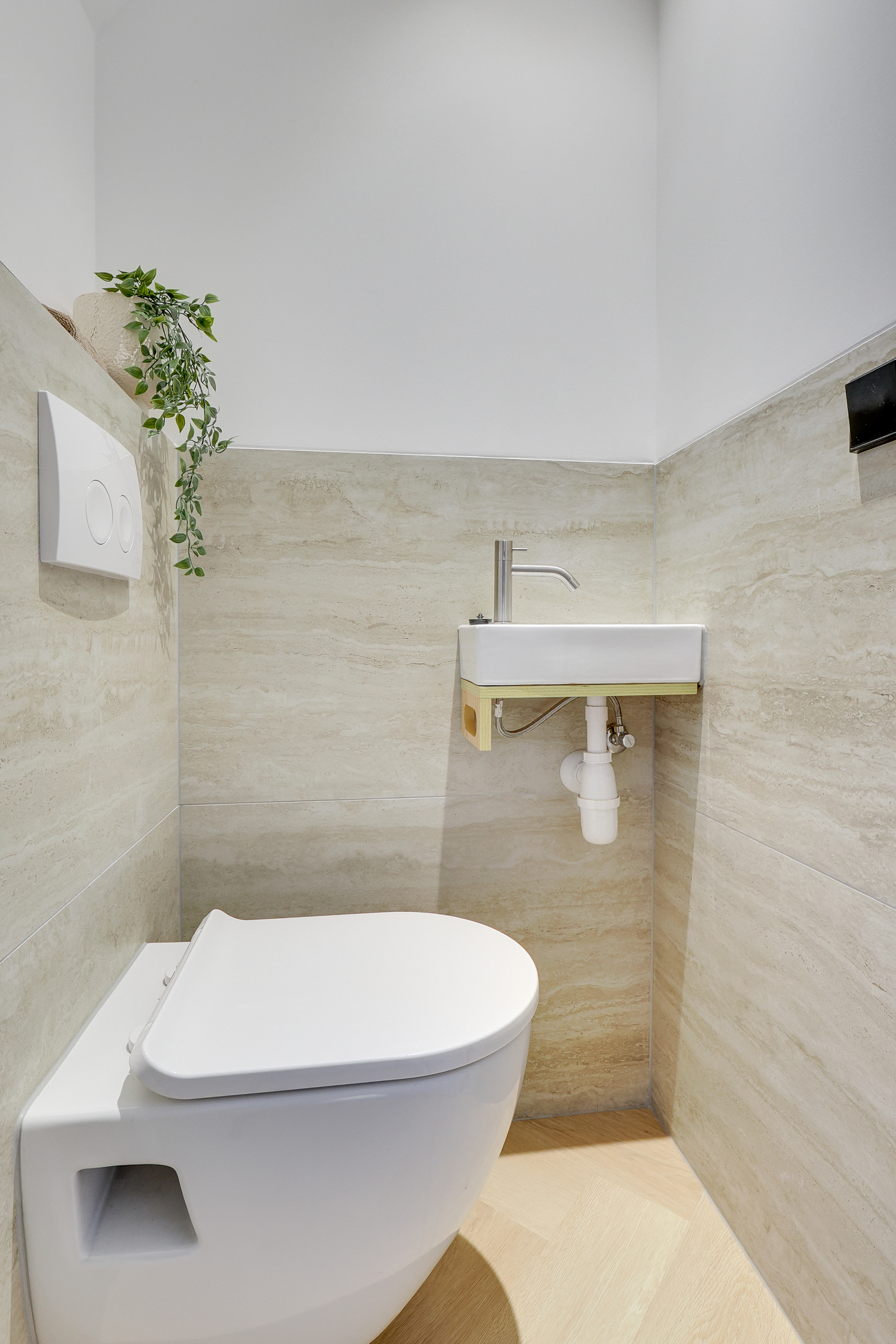Op deze verdieping bevinden zich drie slaapkamers en een moderne badkamer met toilet, dubbele wastafel met meubel en een inloopdouche. De afwerking is luxe en tijdloos, met oog voor comfort.