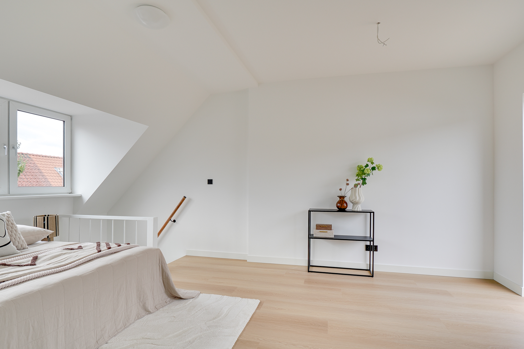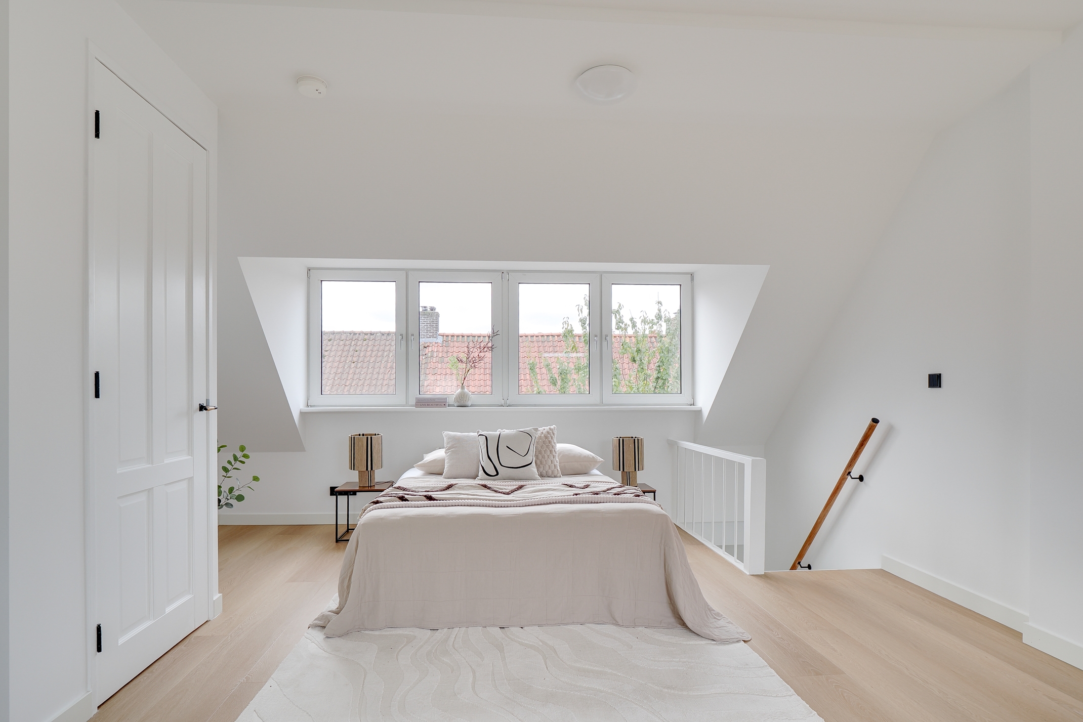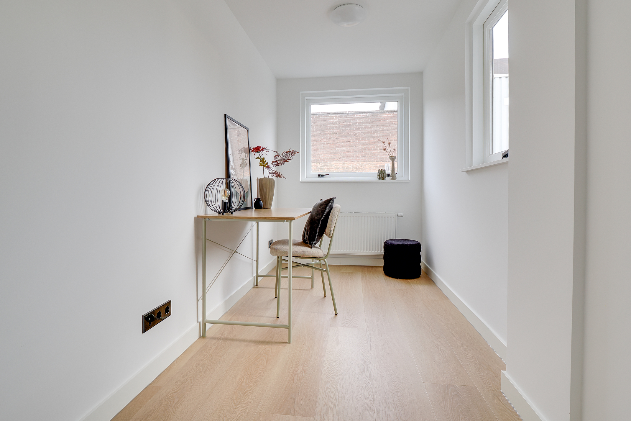 De tweede verdieping biedt een vierde slaapkamer, ideaal als werkkamer, logeerkamer of tienerkamer. Dankzij de ligging op het noord/oosten is dit een prettige en lichte ruimte.