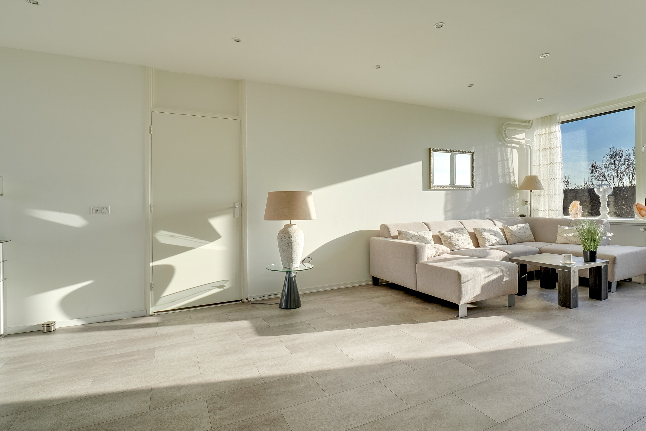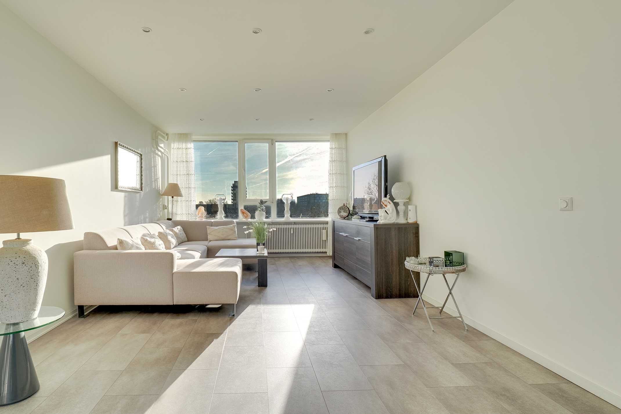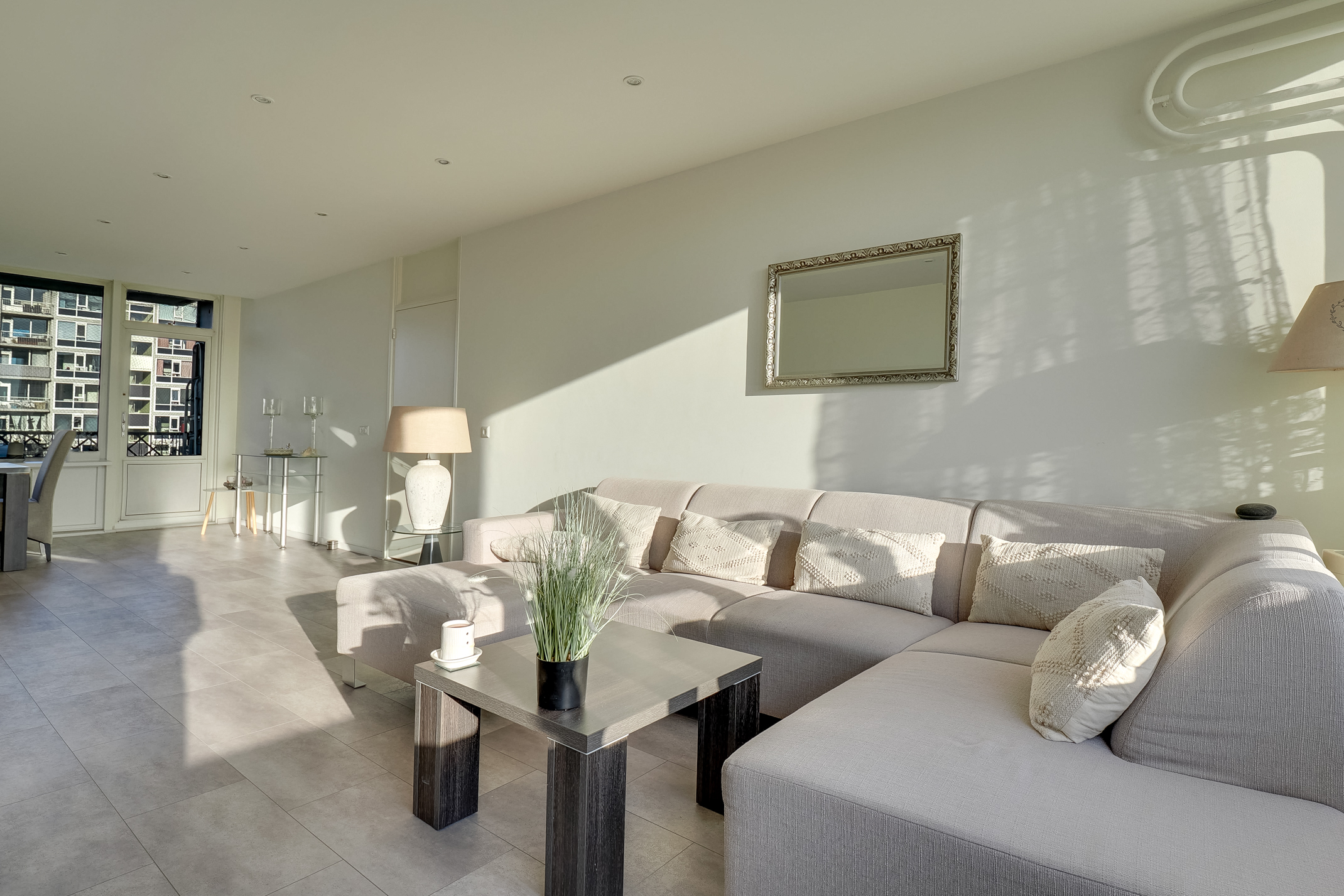 De woonkamer is het hart van het appartement. Grote raampartijen aan beide zijden zorgen voor een aangename lichtinval gedurende de hele dag en geven een ruimtelijk gevoel. Er is volop plek voor een comfortabele zithoek en een royale eettafel. Vanuit de woonkamer stap je zo het balkon aan de achterzijde op, gelegen op het westen. Hier geniet je in de namiddag en avond volop van de zon, een heerlijke plek om na het werk buiten te zitten met een drankje of een goed boek.
