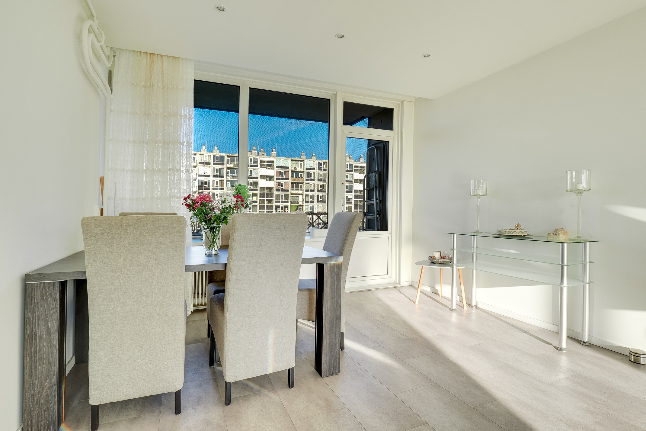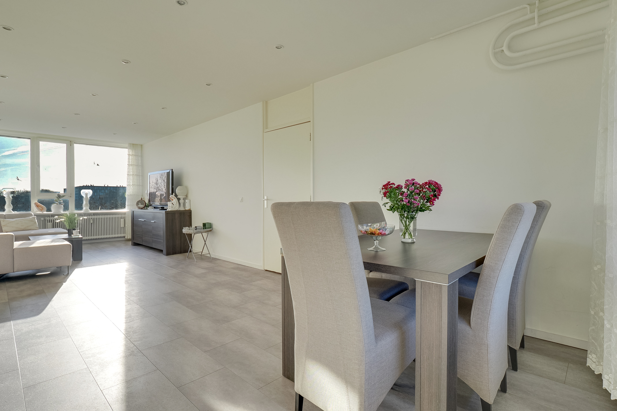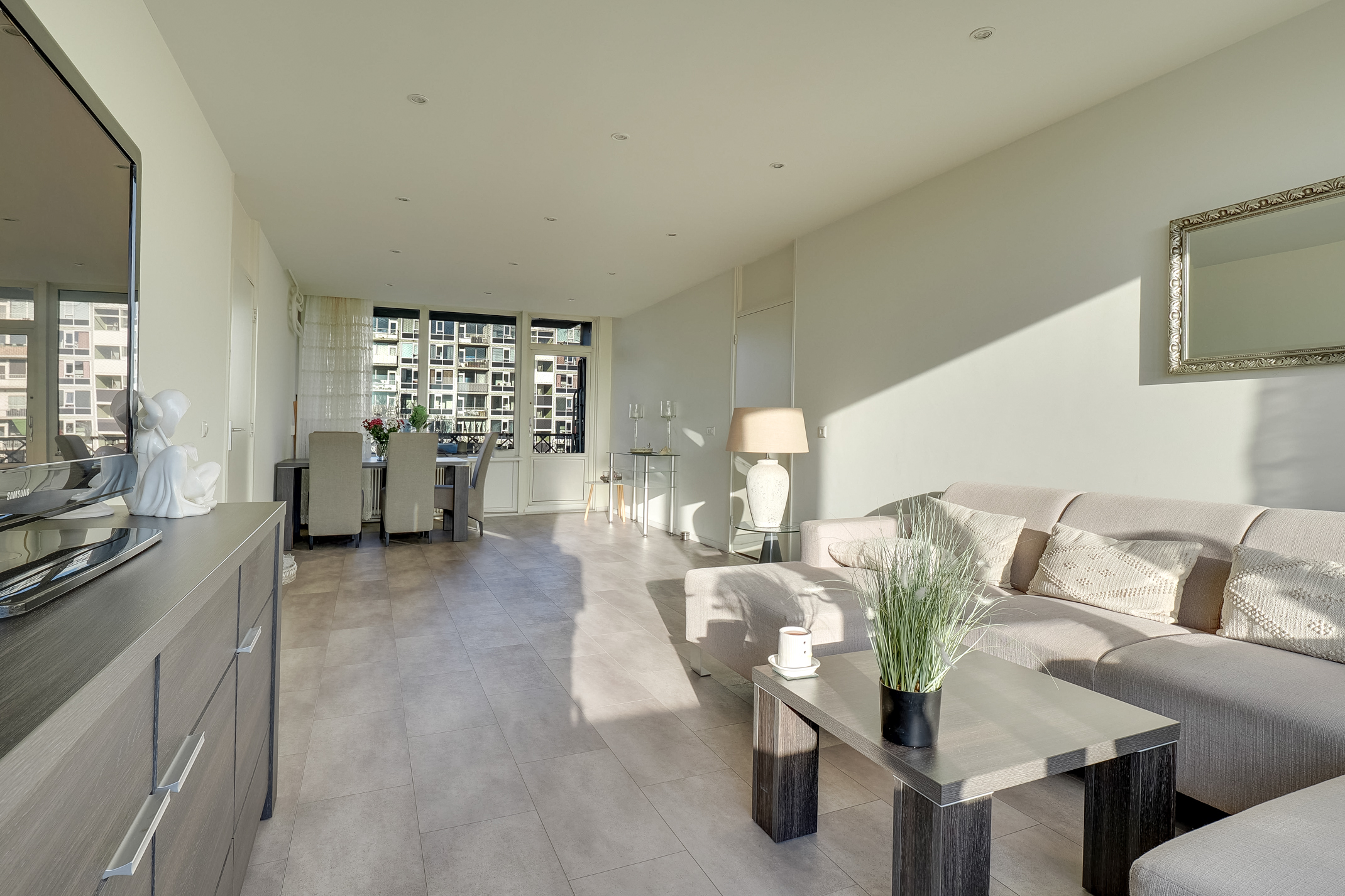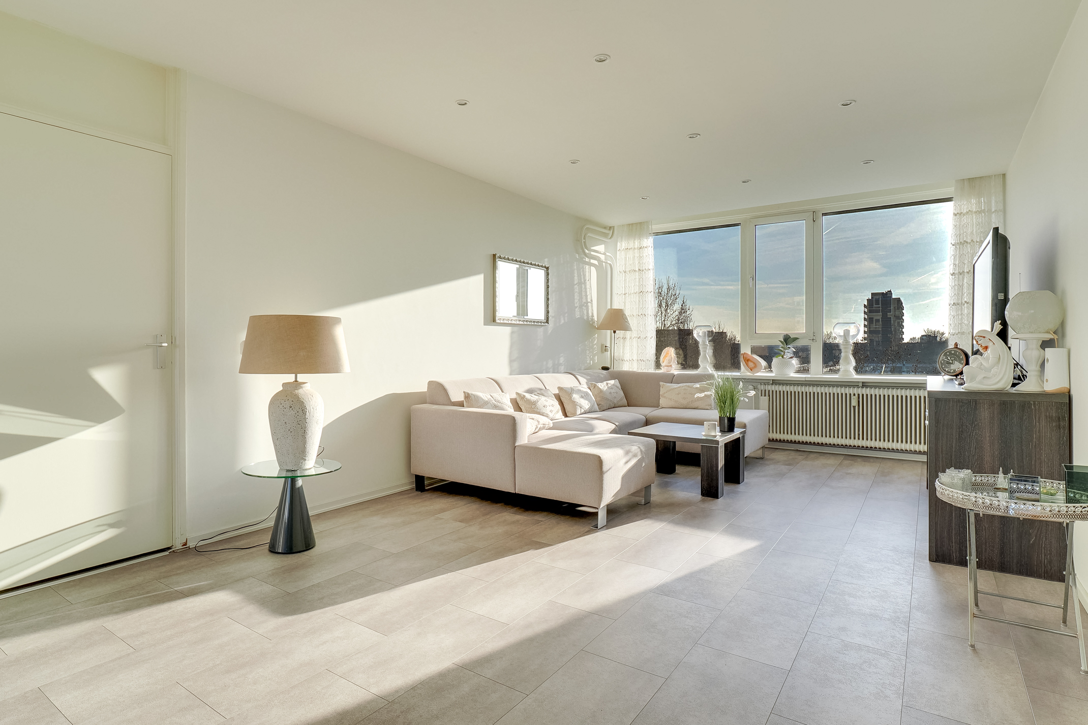 De woonkamer is het hart van het appartement. Grote raampartijen aan beide zijden zorgen voor een aangename lichtinval gedurende de hele dag en geven een ruimtelijk gevoel. Er is volop plek voor een comfortabele zithoek en een royale eettafel. Vanuit de woonkamer stap je zo het balkon aan de achterzijde op, gelegen op het westen. Hier geniet je in de namiddag en avond volop van de zon, een heerlijke plek om na het werk buiten te zitten met een drankje of een goed boek.