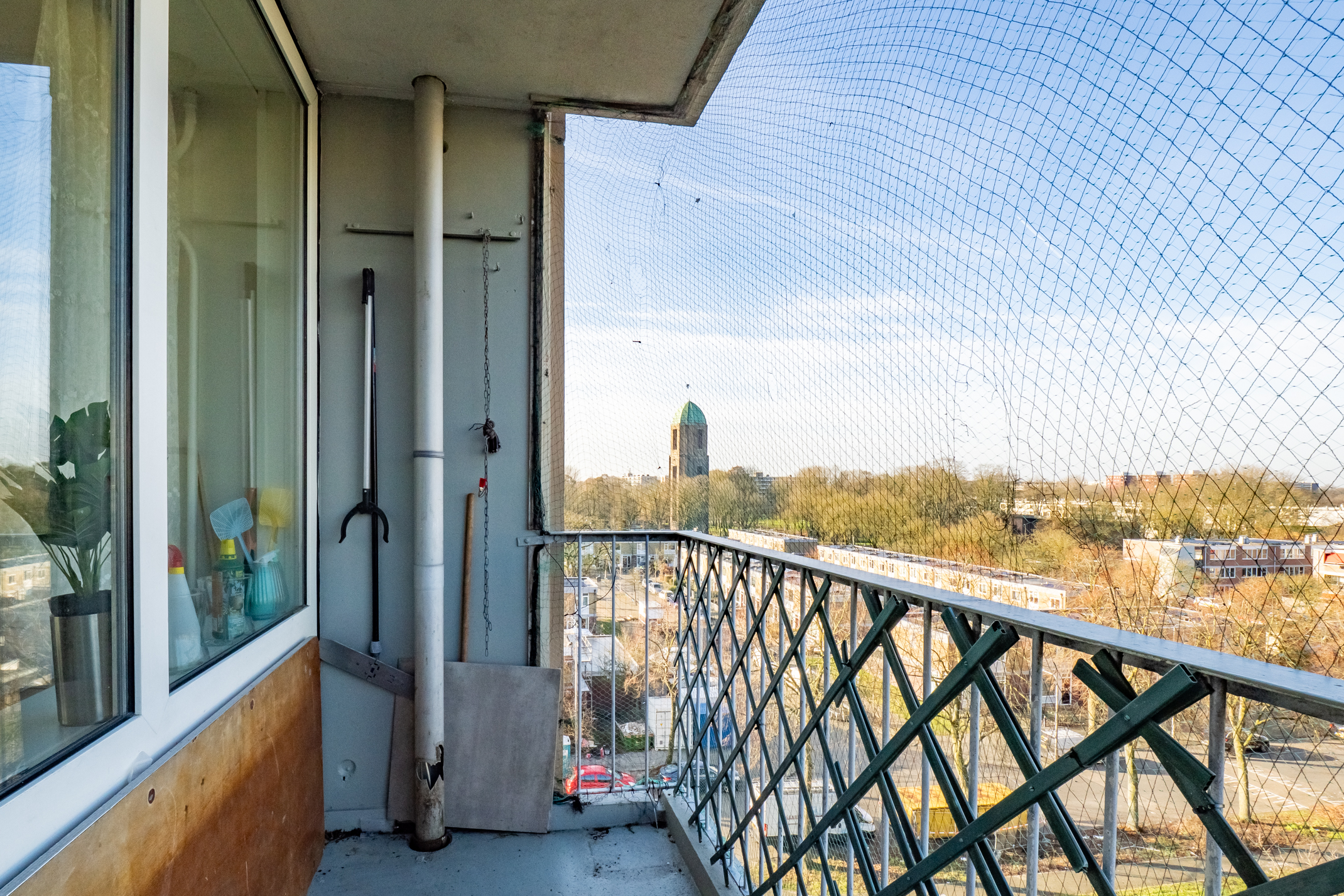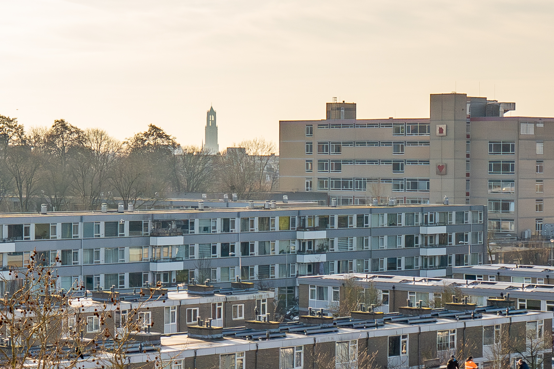 Op de zesde verdieping van een verzorgd appartementencomplex ligt dit ruime appartement met energielabel A en een prettig vrij uitzicht aan zowel de voor als achterzijde. Aan de voorzijde kijk je richting de Dom, een iconisch en herkenbaar uitzicht dat elke dag opnieuw herinnert aan wonen in Utrecht. Aan de achterzijde ervaar je juist rust en groen. Binnen voelt het appartement direct fris en verzorgd, in 2023 is alles strak gestuct en geschilderd en afgewerkt met een nette laminaatvloer.