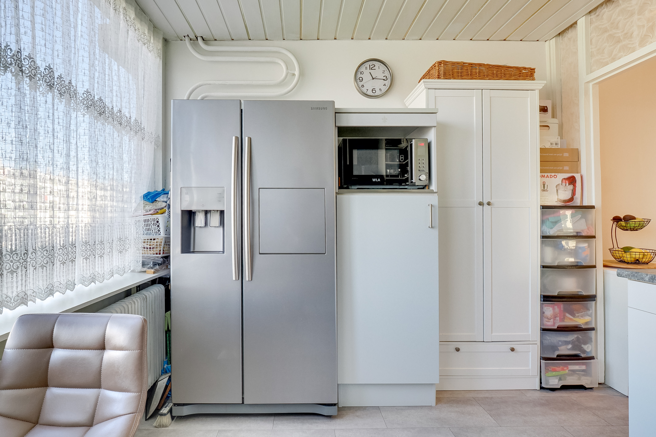 De afgesloten keuken is praktisch ingericht en ideaal voor wie graag kookt. De grote oven in combinatie met een gasfornuis maakt deze keuken compleet en nodigt uit om uitgebreid te koken. Dankzij het prettige werkblad en de slimme indeling is dit een fijne en functionele ruimte.