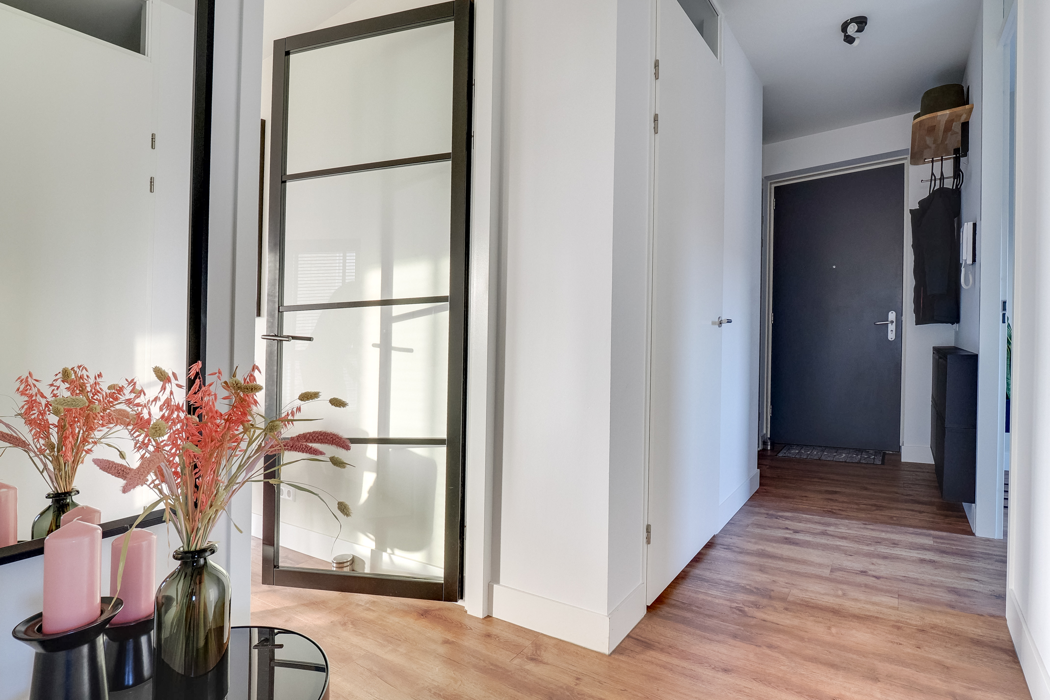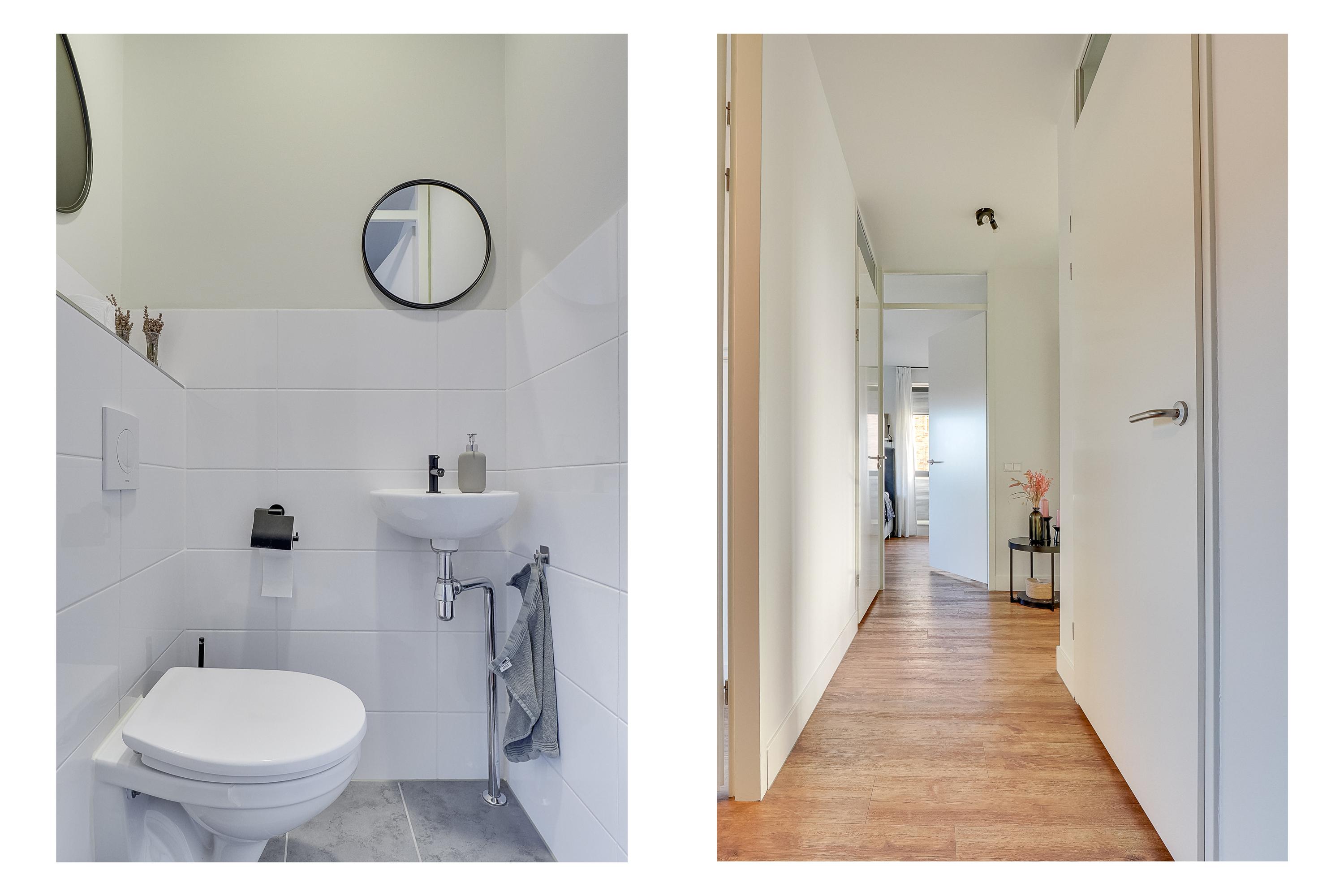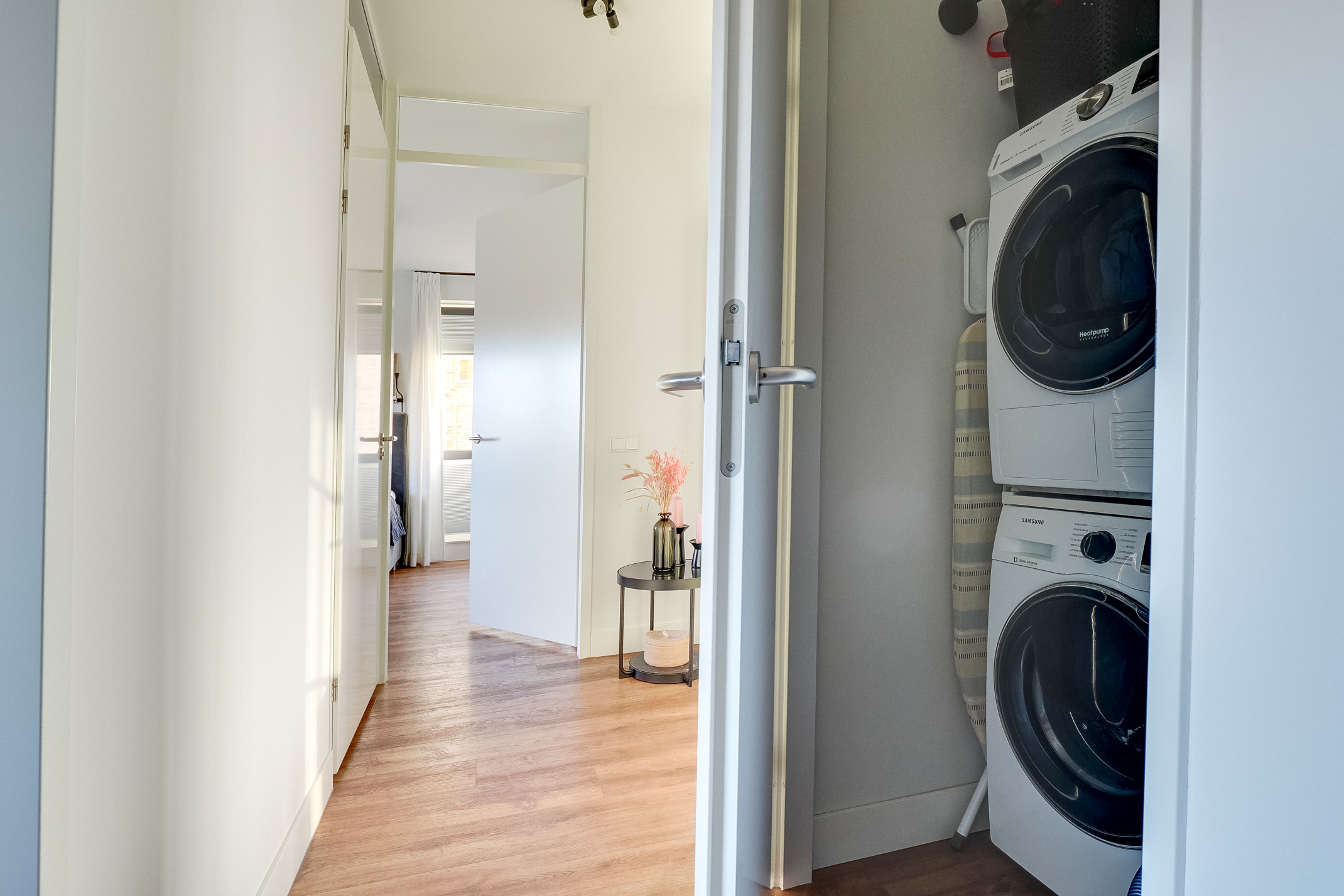 Een groot pluspunt van dit appartement is de aparte wasruimte, waar de wasmachine en droger netjes uit het zicht geplaatst kunnen worden. Dit zorgt voor extra gemak en draagt bij aan een opgeruimde en functionele woonindeling.