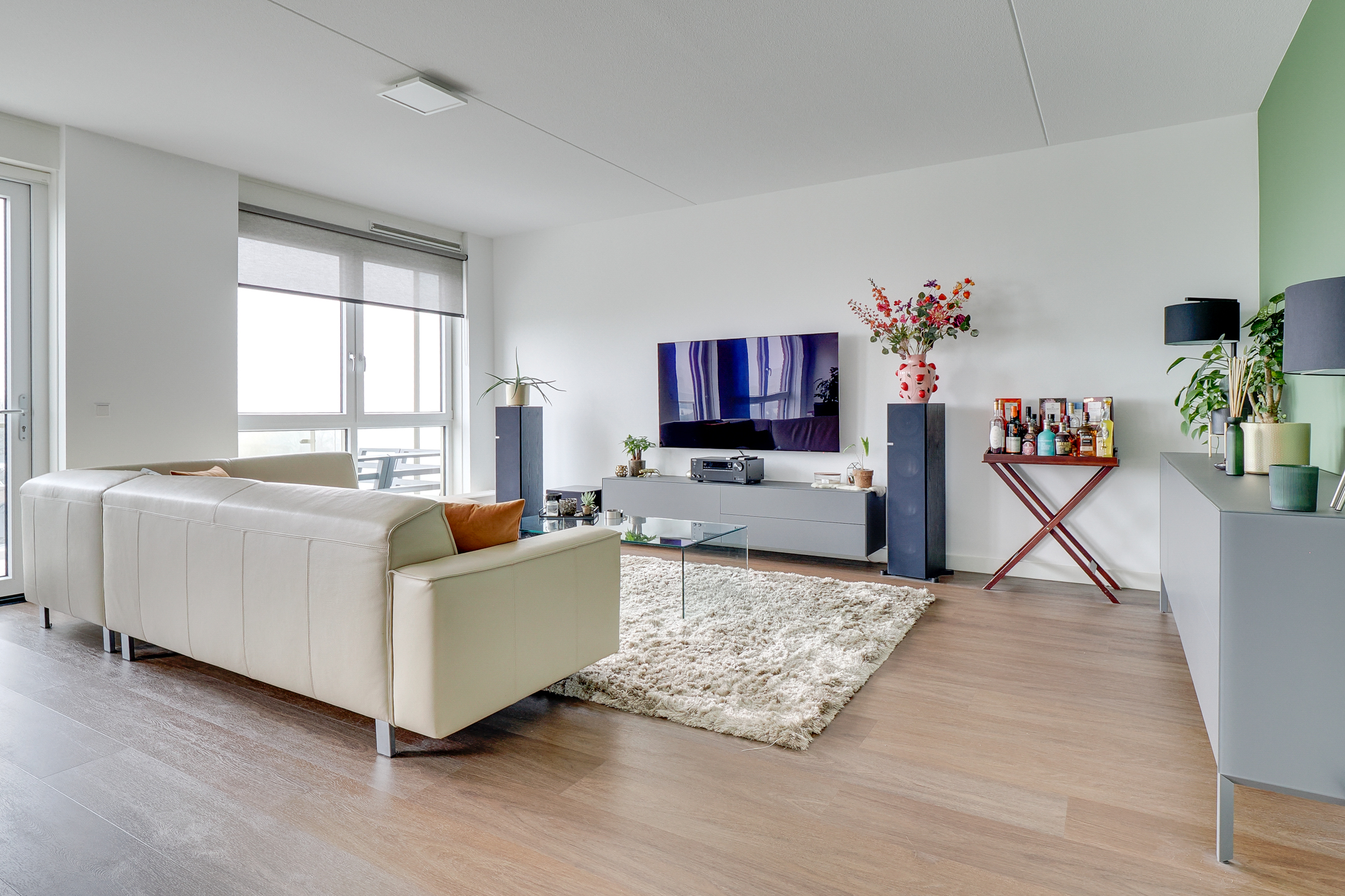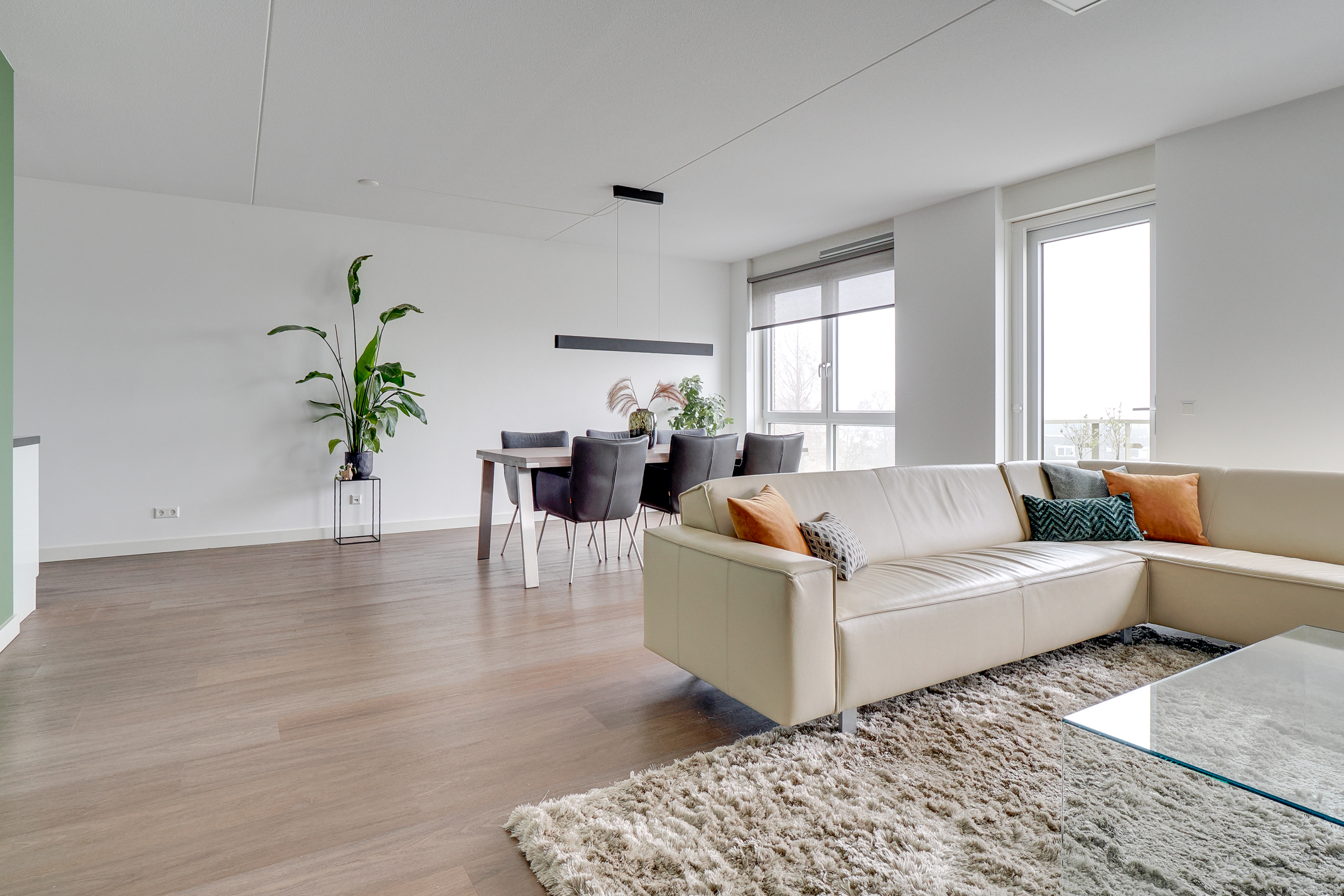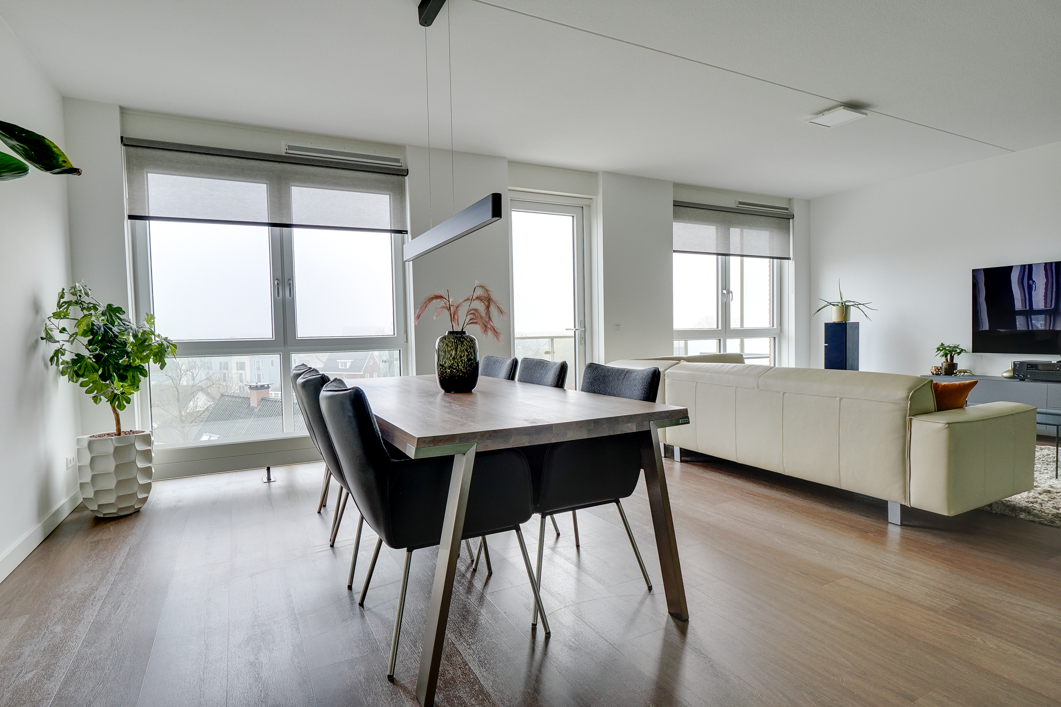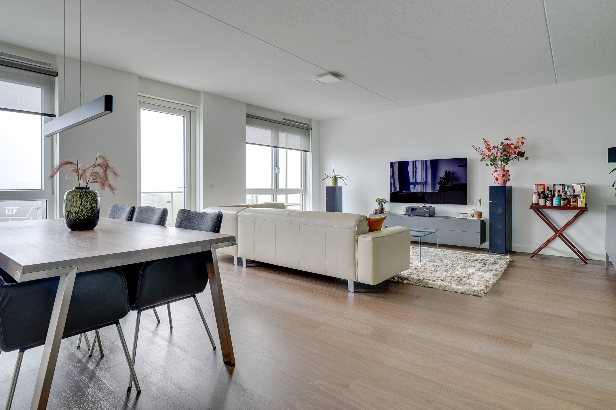 Het appartement maakt deel uit van een modern wooncomplex uit 2022 en beschikt over een woonoppervlakte van circa 96 m². Dankzij de grote raampartijen aan meerdere zijden valt er veel natuurlijk licht binnen en geniet je van een vrij en open uitzicht. De ruime woonkamer vormt het hart van de woning en biedt volop ruimte voor een comfortabele zithoek en een royale eethoek. De open keuken sluit hier naadloos op aan en is modern uitgevoerd met diverse inbouwapparatuur, waardoor koken en samenkomen hier moeiteloos samengaan.