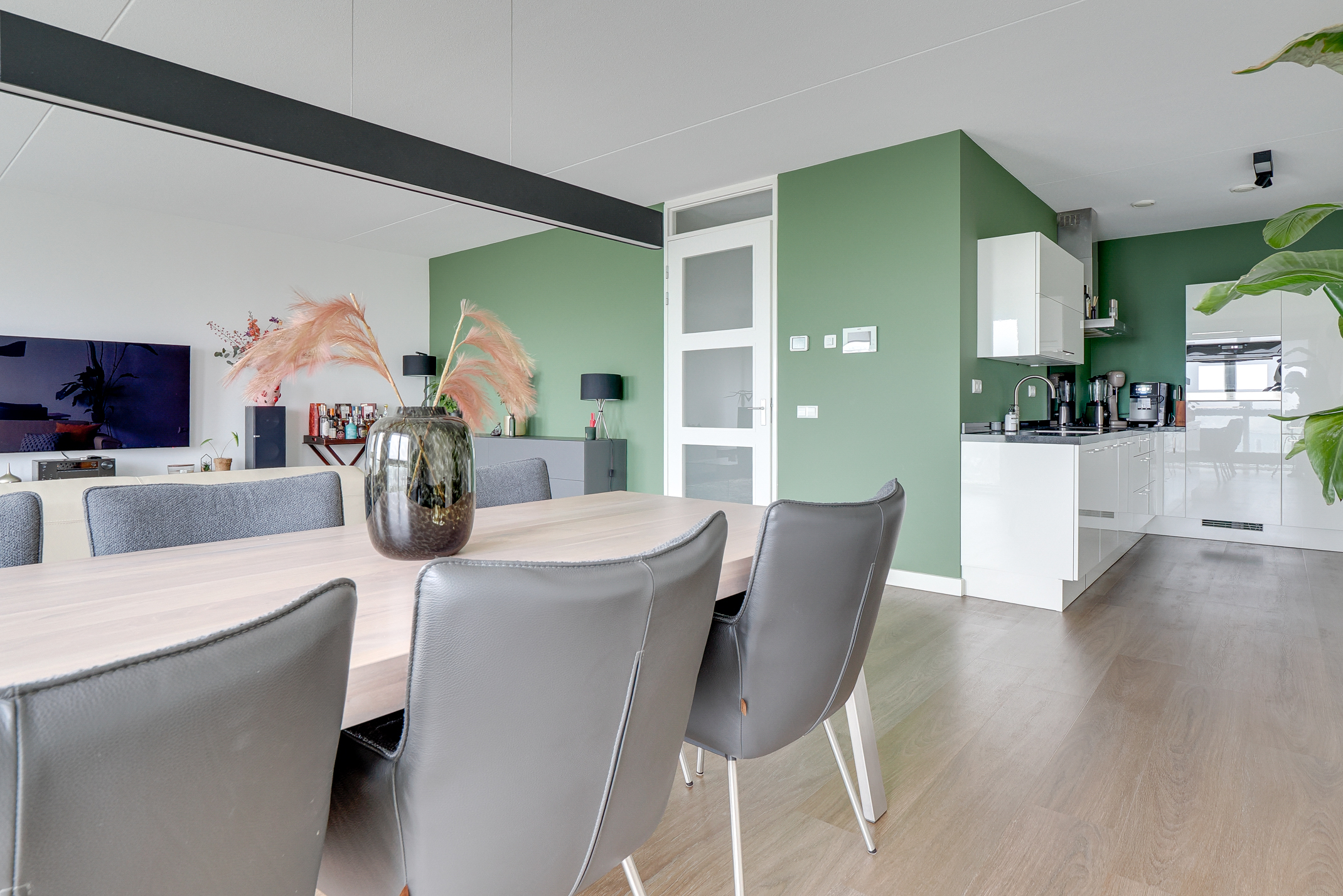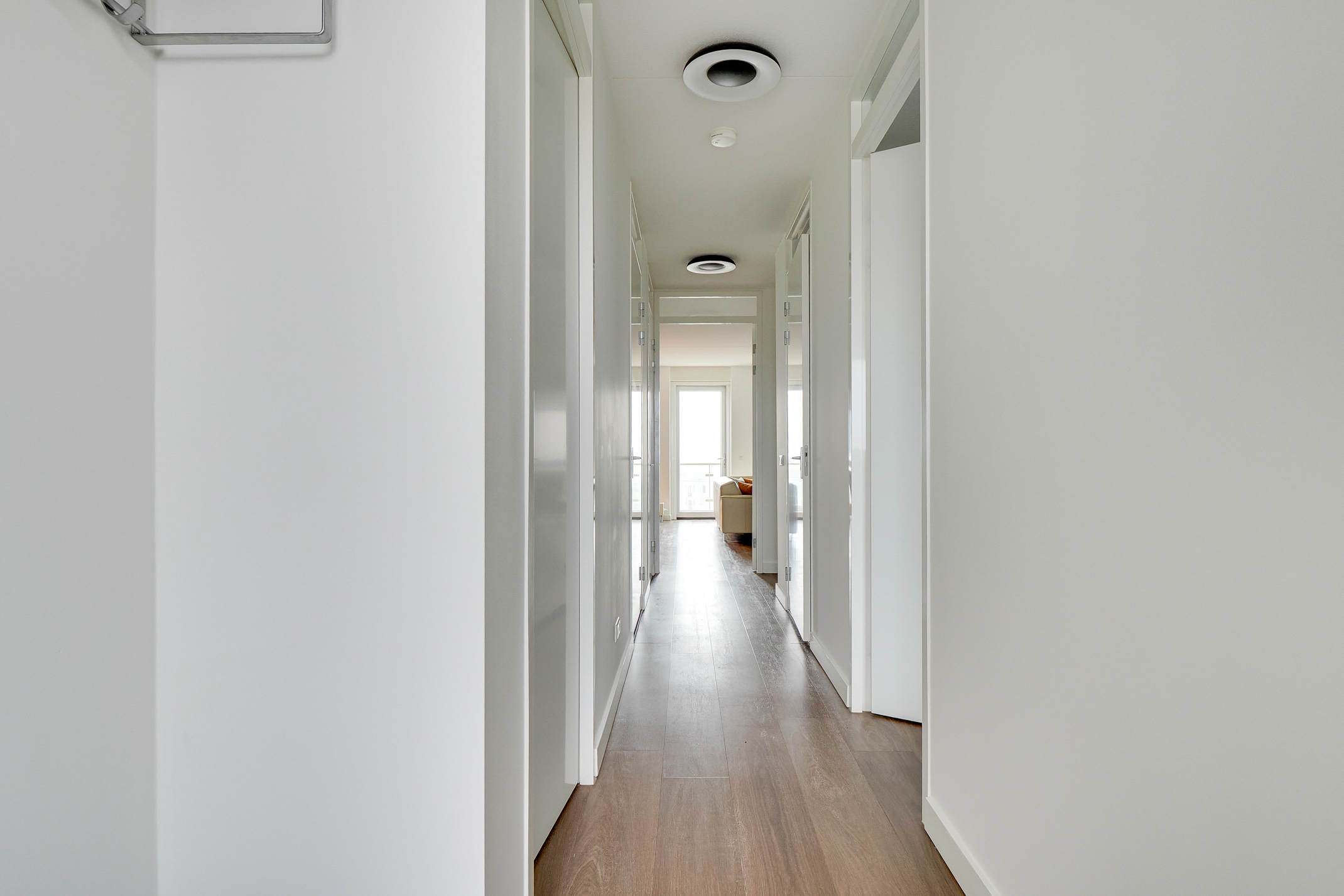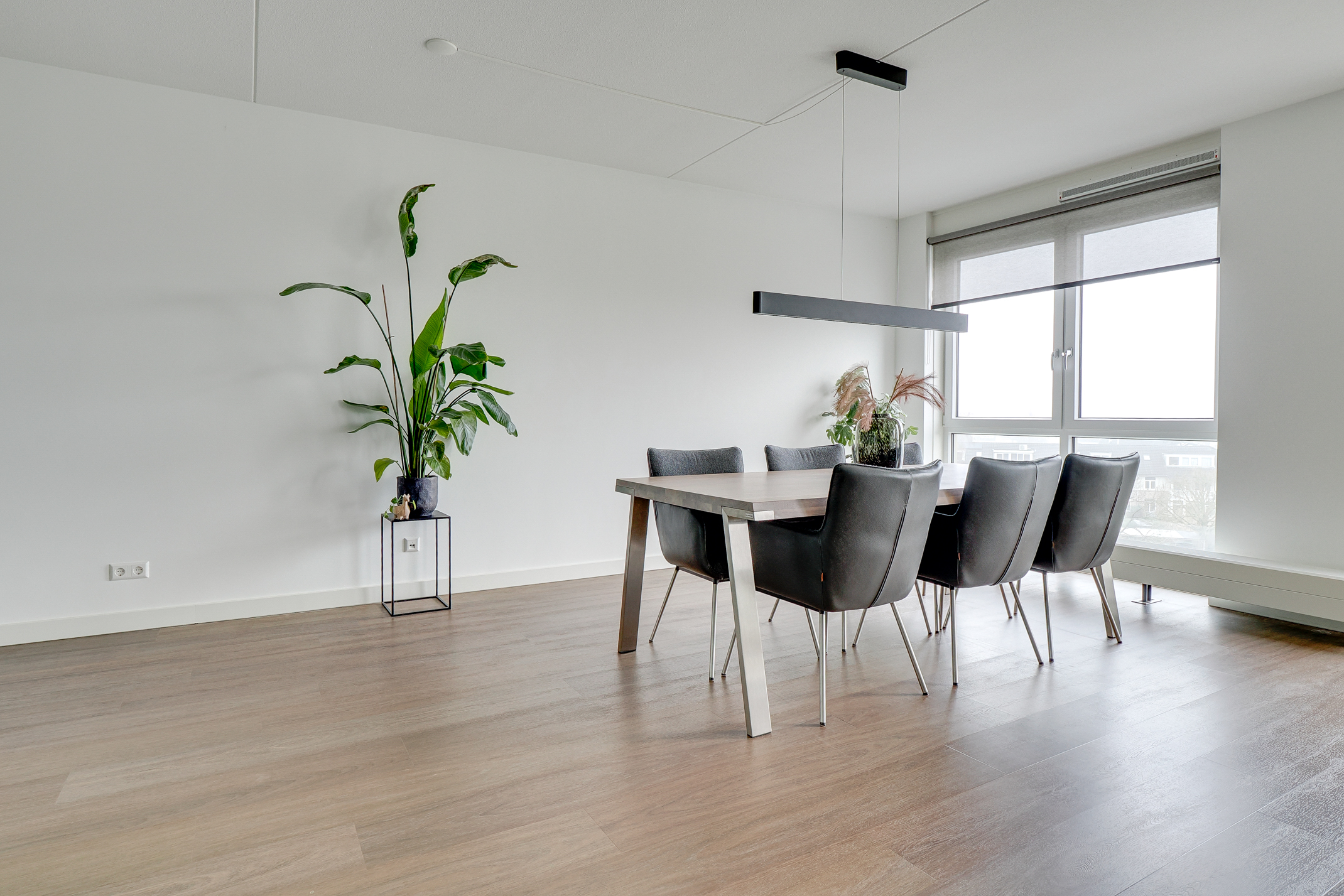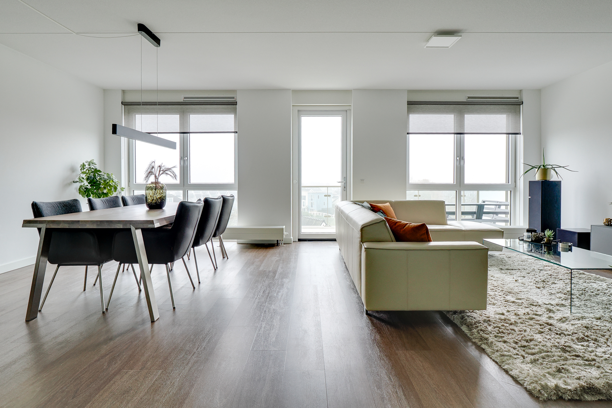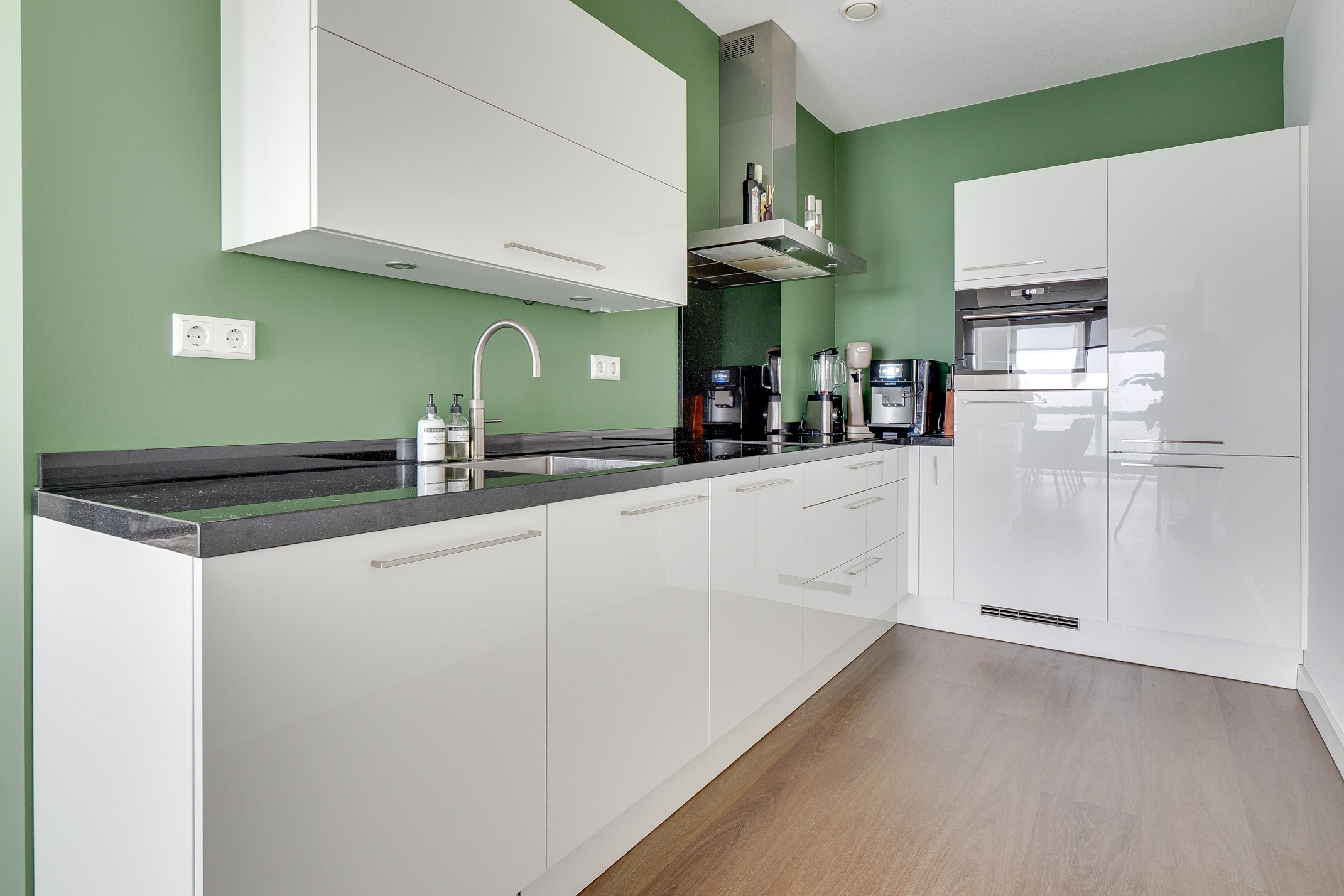 Het appartement maakt deel uit van een modern wooncomplex uit 2022 en beschikt over een woonoppervlakte van circa 96 m². Dankzij de grote raampartijen aan meerdere zijden valt er veel natuurlijk licht binnen en geniet je van een vrij en open uitzicht. De ruime woonkamer vormt het hart van de woning en biedt volop ruimte voor een comfortabele zithoek en een royale eethoek. De open keuken sluit hier naadloos op aan en is modern uitgevoerd met diverse inbouwapparatuur, waardoor koken en samenkomen hier moeiteloos samengaan.