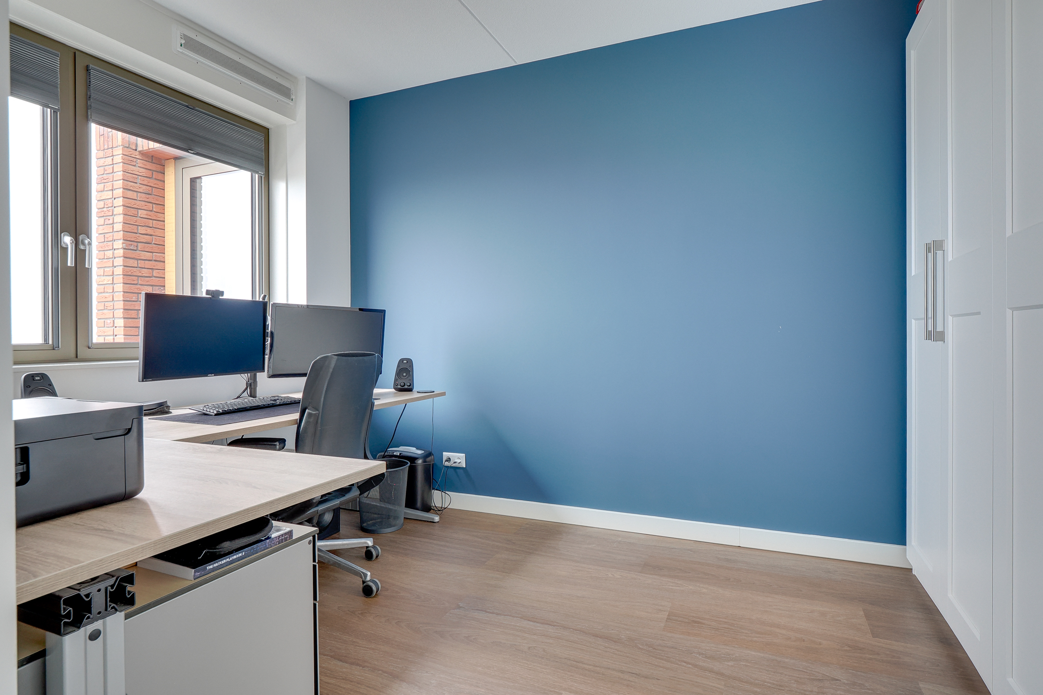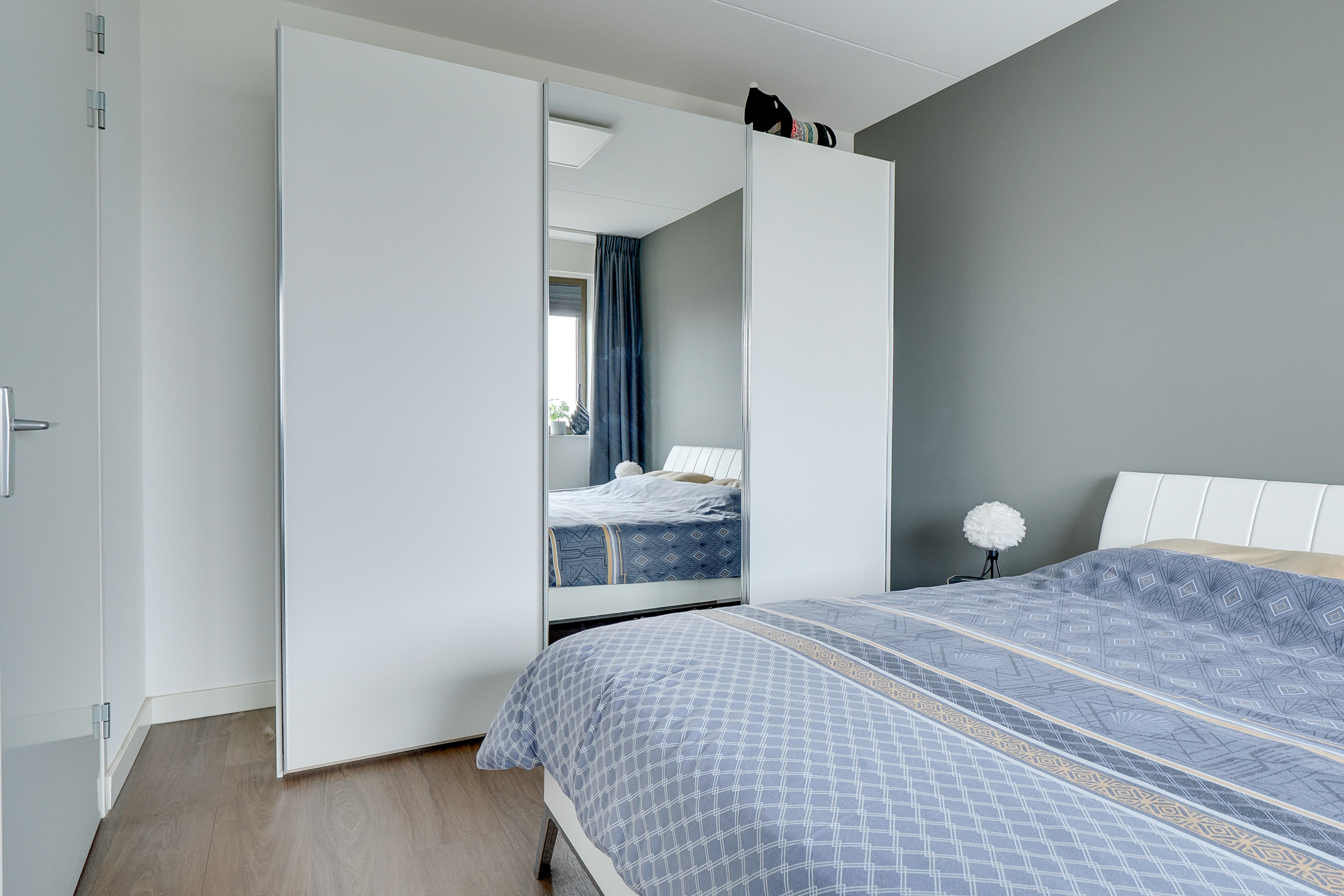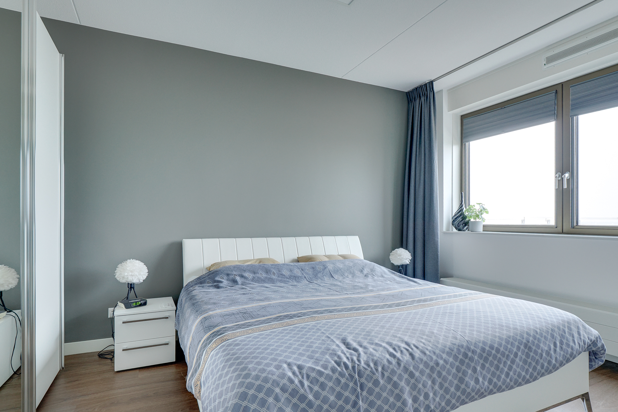 De woning beschikt over drie kamers, waaronder twee goed bemeten slaapkamers. Deze kamers zijn flexibel in te richten en kunnen naast slaapkamer ook uitstekend dienen als werk- of logeerkamer. De badkamer is modern afgewerkt en voorzien van een ligbad met douche en een stijlvol wastafelmeubel. Daarnaast is er een separaat toilet en een praktische interne berging met aansluitingen voor wasmachine en droger.