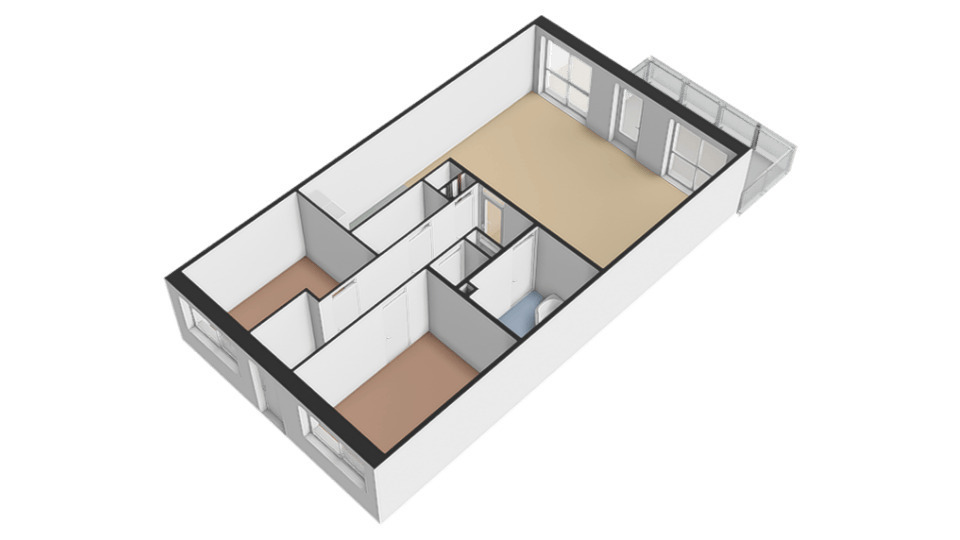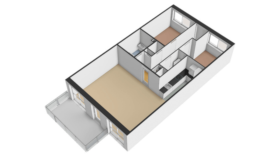 - Aantal kamers: 3 (waarvan 2 slaapkamers)