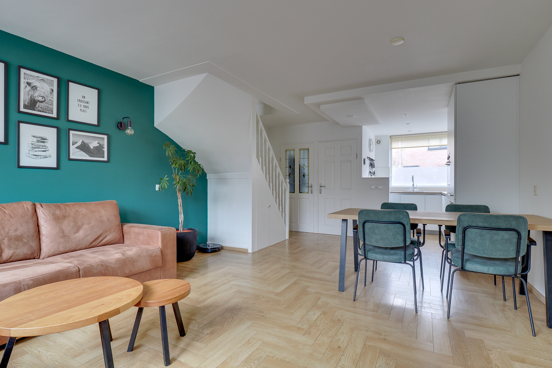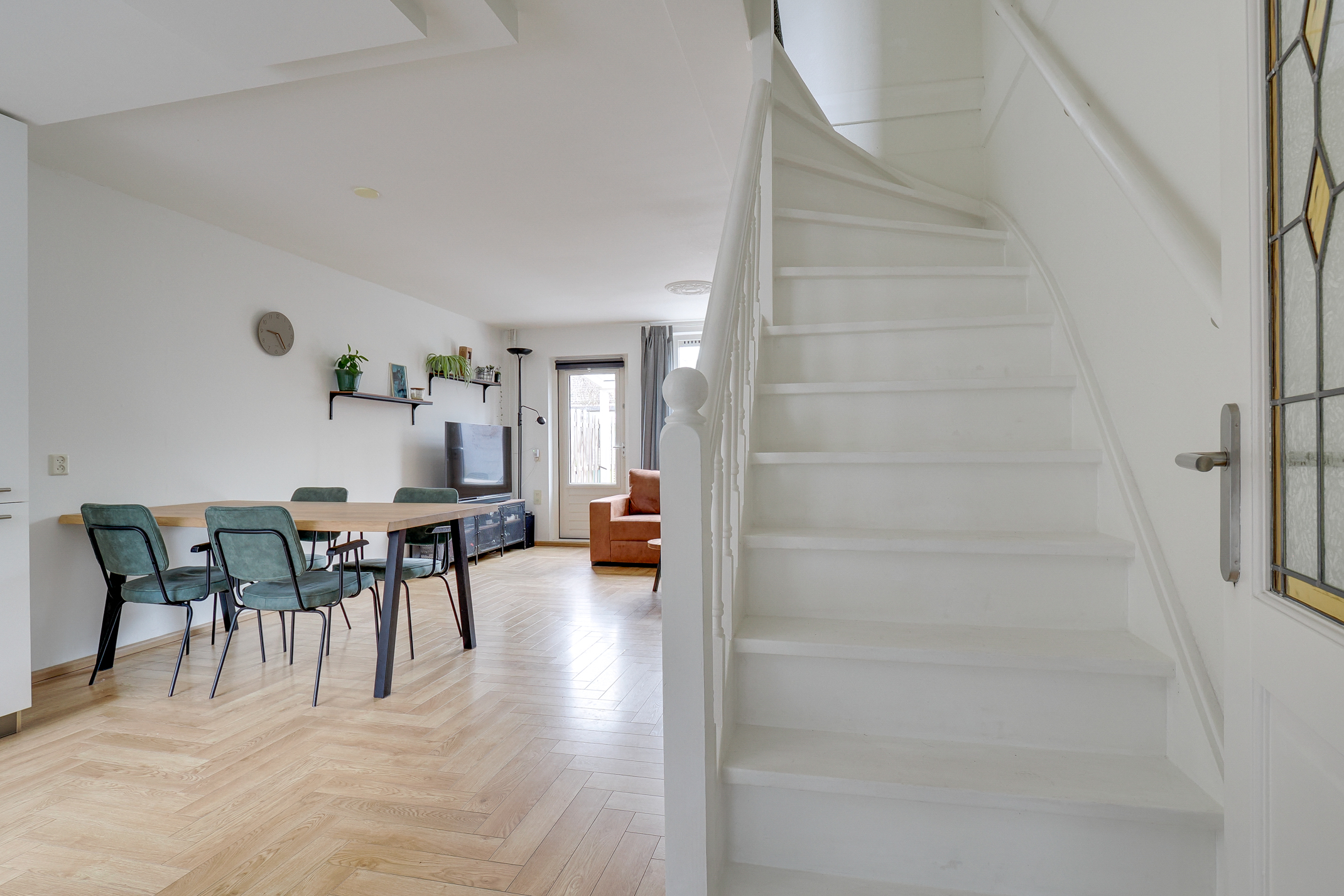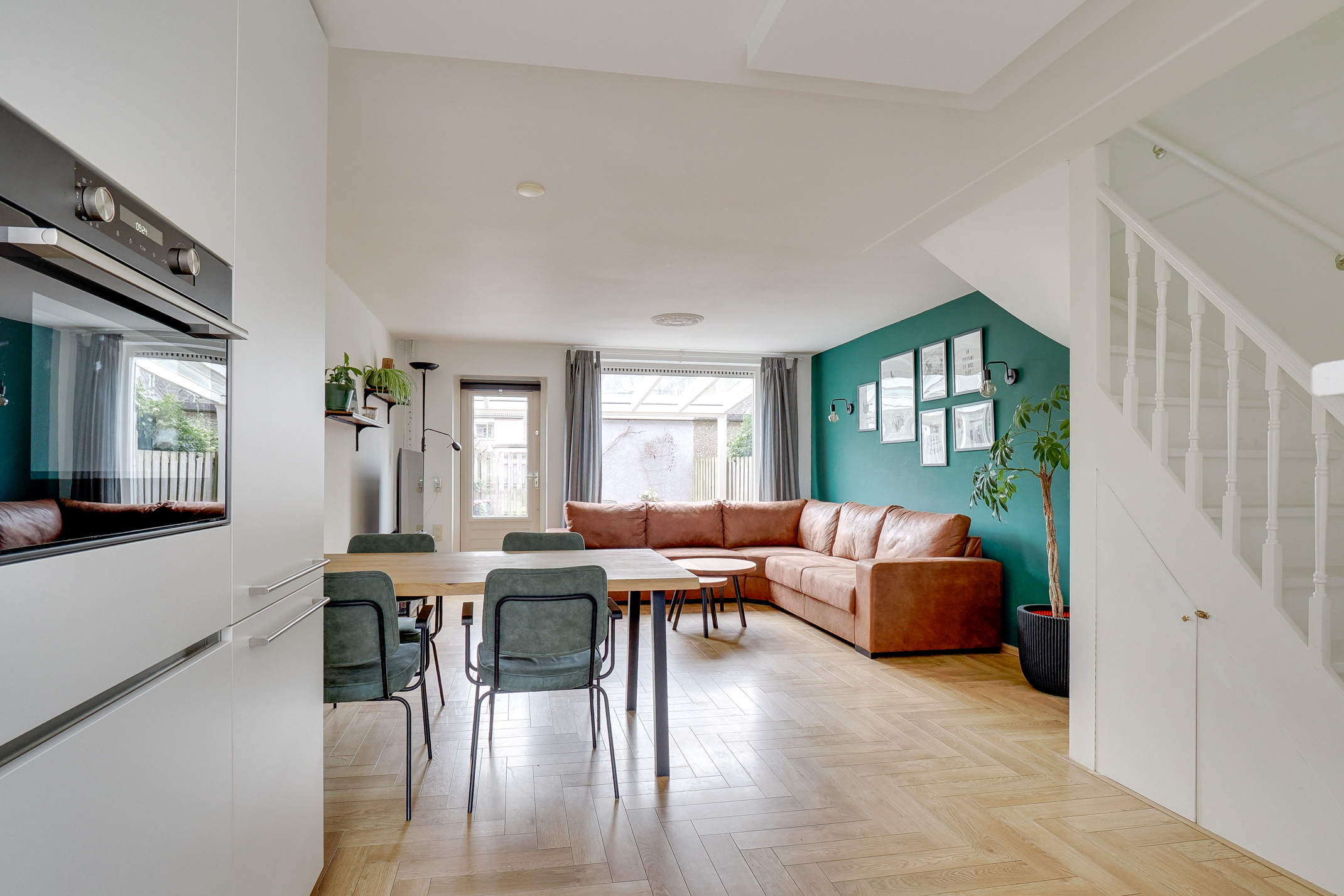 Je stapt binnen in een lichte woonkamer van ca. 30 m², met een prettige doorzoninval en een open trap naar de verdieping. De open keuken aan de achterzijde is in 2022 vernieuwd, en voorzien van modern comfort. Dankzij de openslaande deur(s) heb je direct toegang tot de tuin.