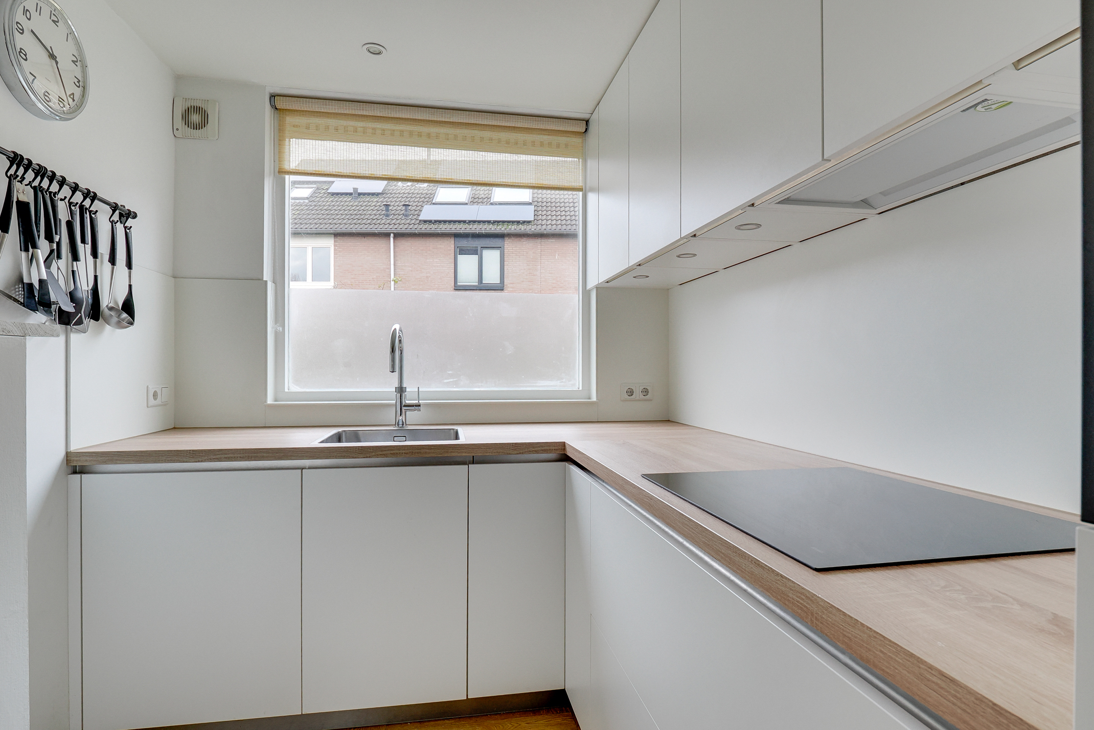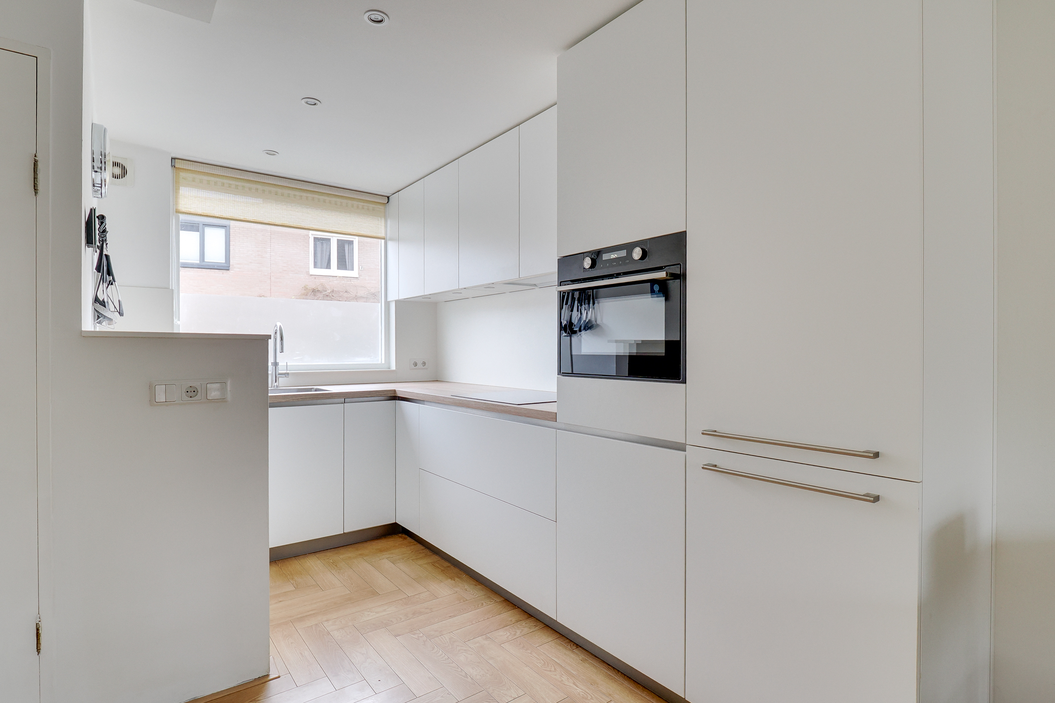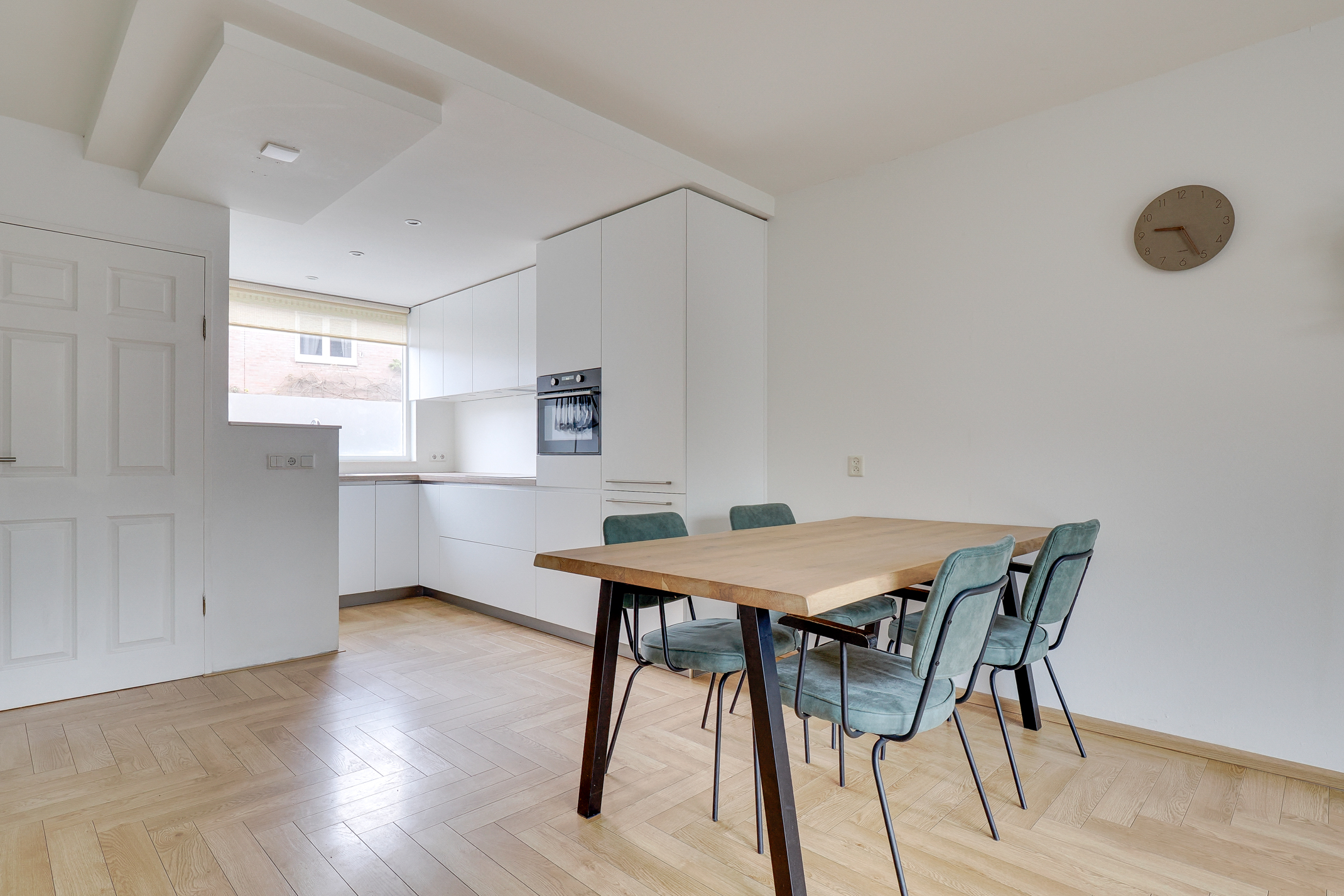 Je stapt binnen in een lichte woonkamer van ca. 30 m², met een prettige doorzoninval en een open trap naar de verdieping. De open keuken aan de achterzijde is in 2022 vernieuwd, en voorzien van modern comfort. Dankzij de openslaande deur(s) heb je direct toegang tot de tuin.