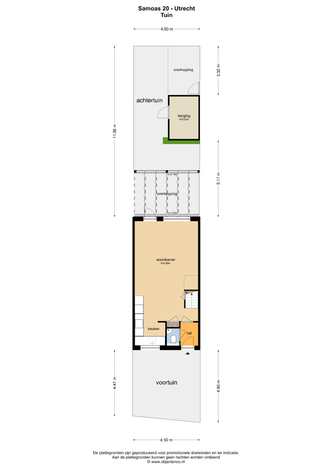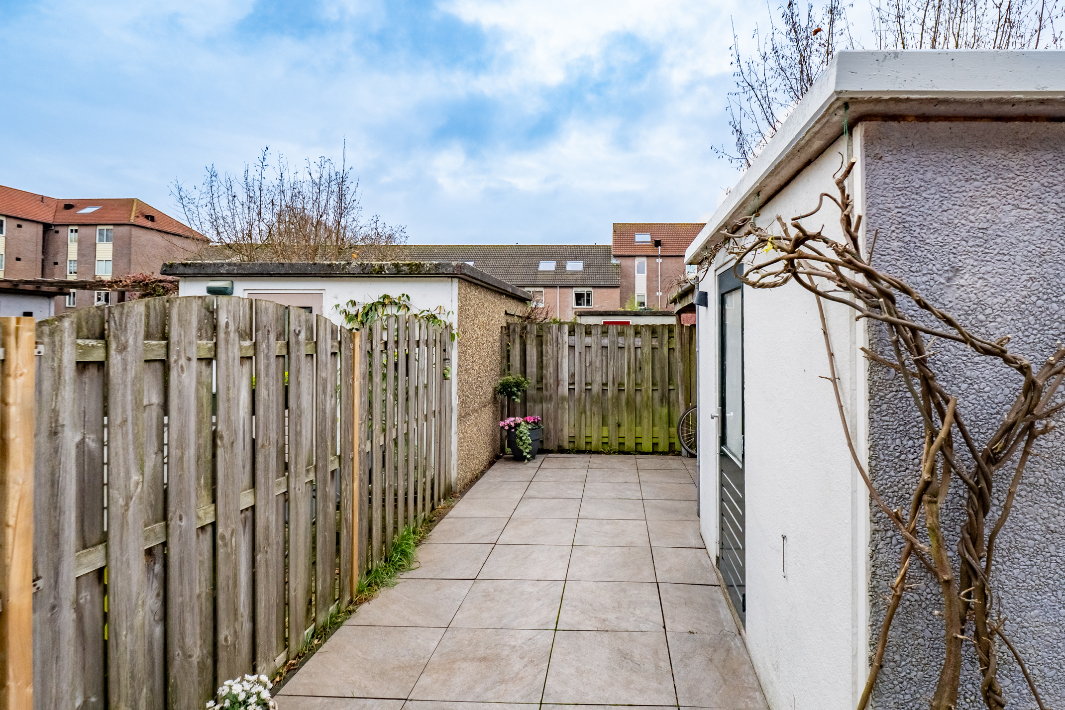 De woning beschikt over een royale achtertuin op het zuidoosten, waar je de hele dag van de zon kunt genieten. De totale tuinoppervlakte bedraagt 73 m², waarvan 52 m² achtertuin. Er is een handige achterom aanwezig.