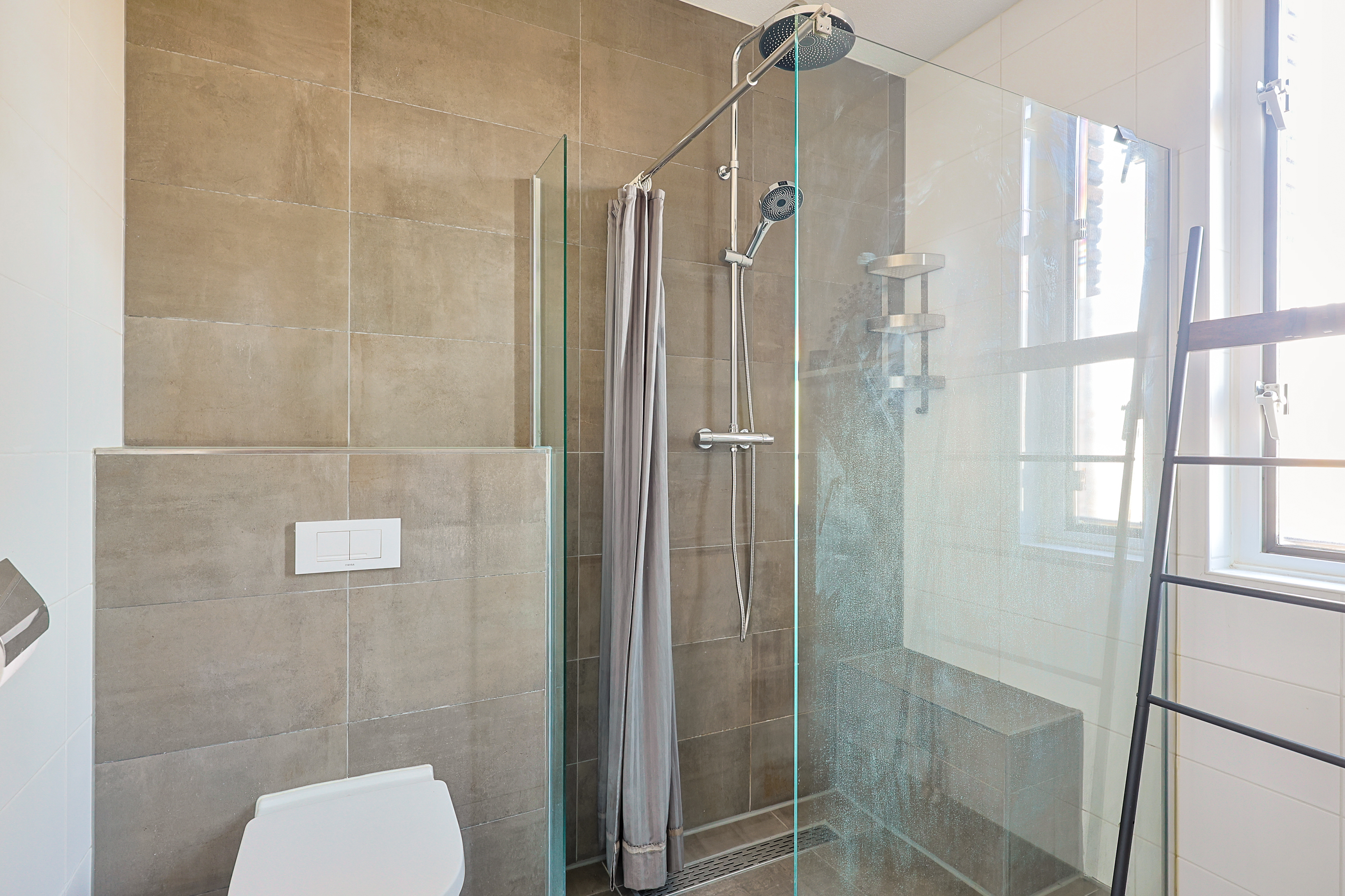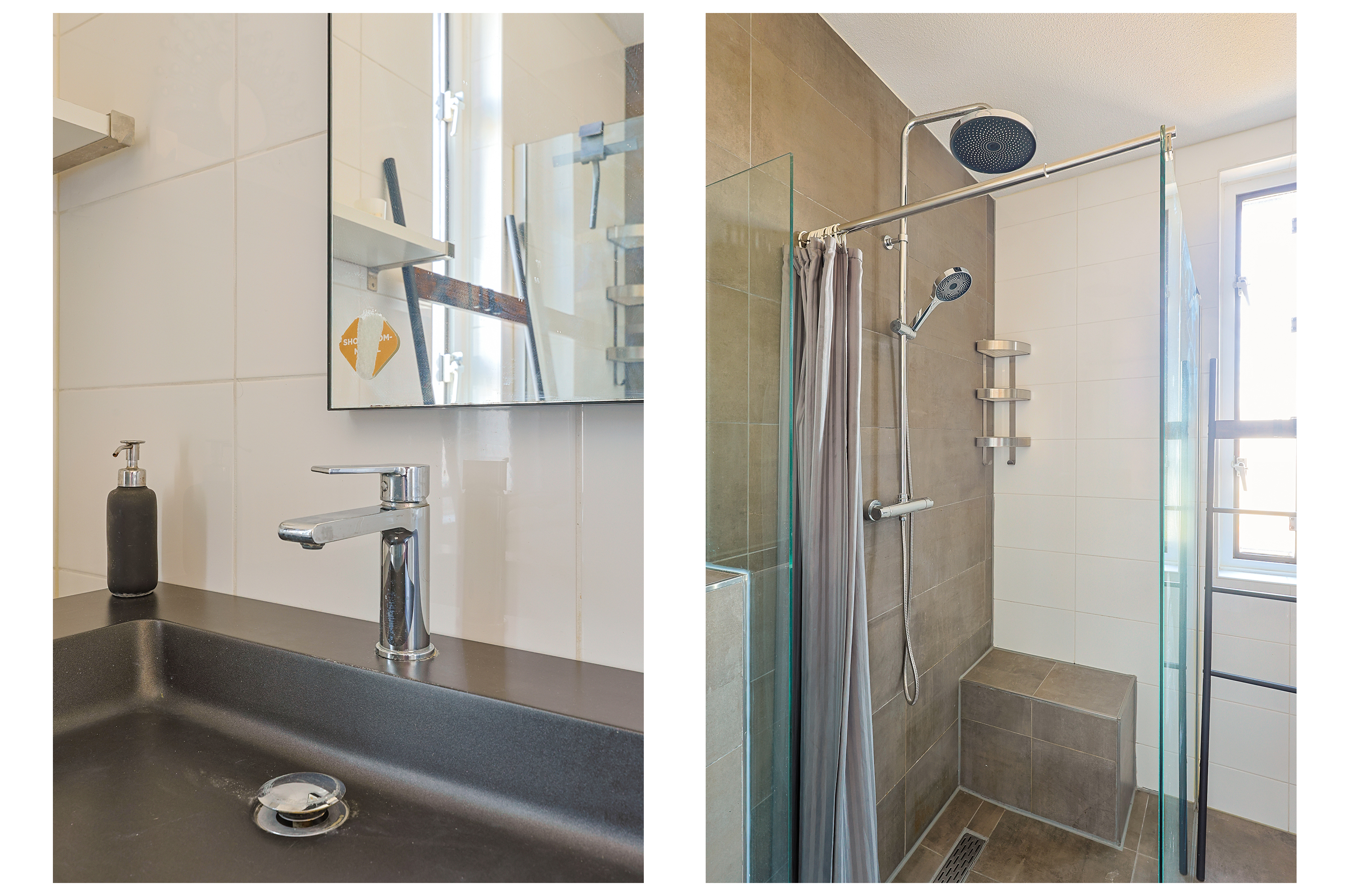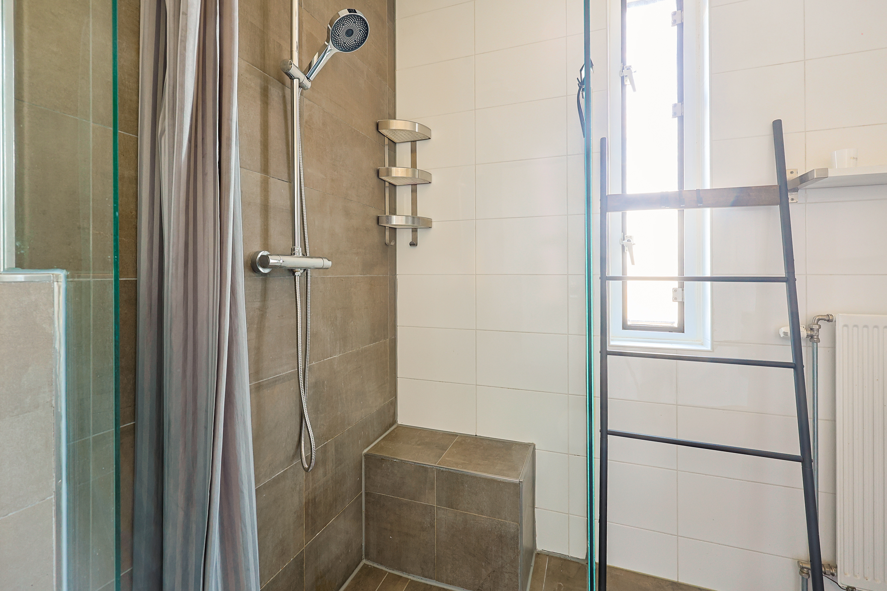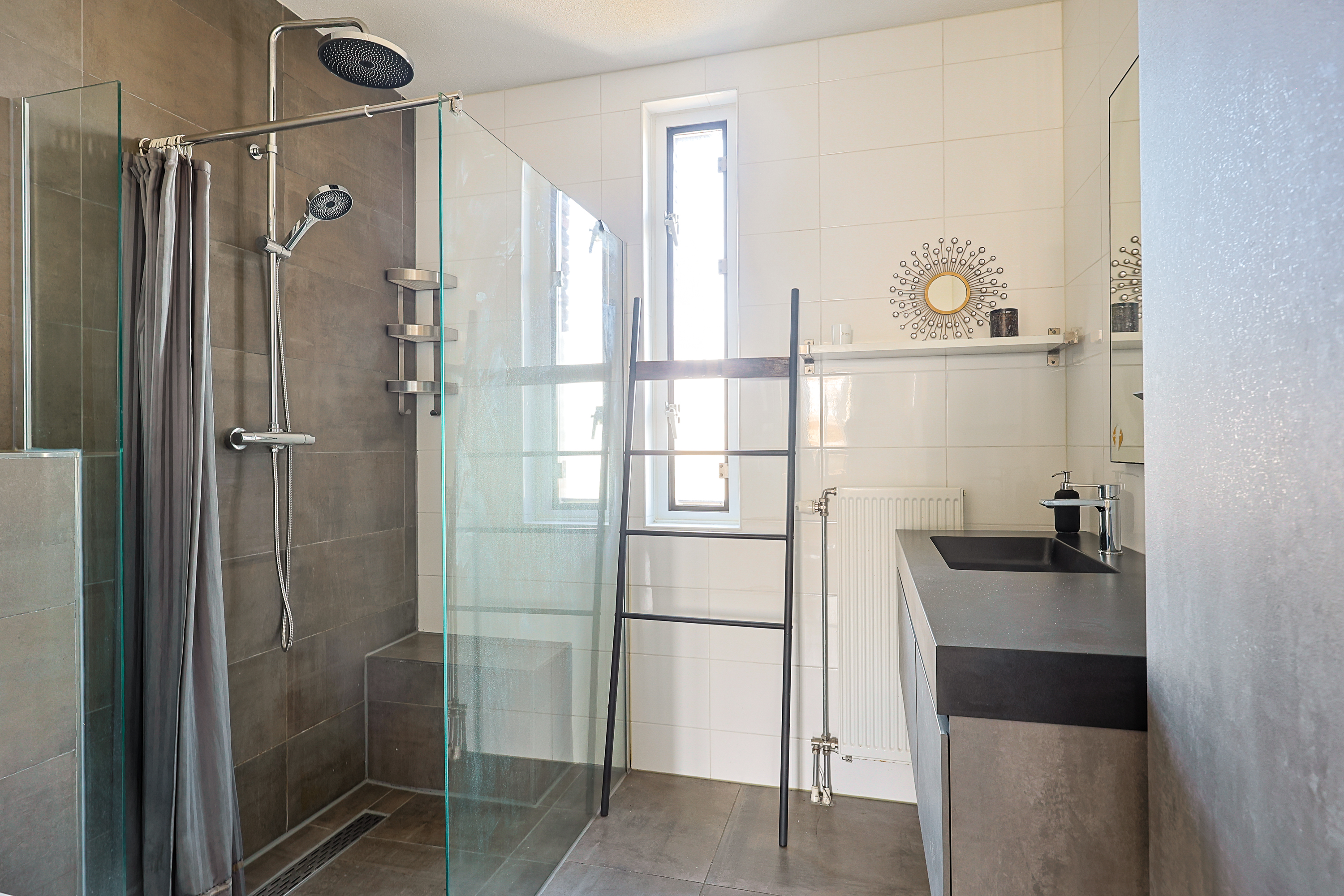 De badkamer is voorzien van een inloopdouche, wastafelmeubel en een tweede toilet, wat zorgt voor extra comfort voor gezinnen.