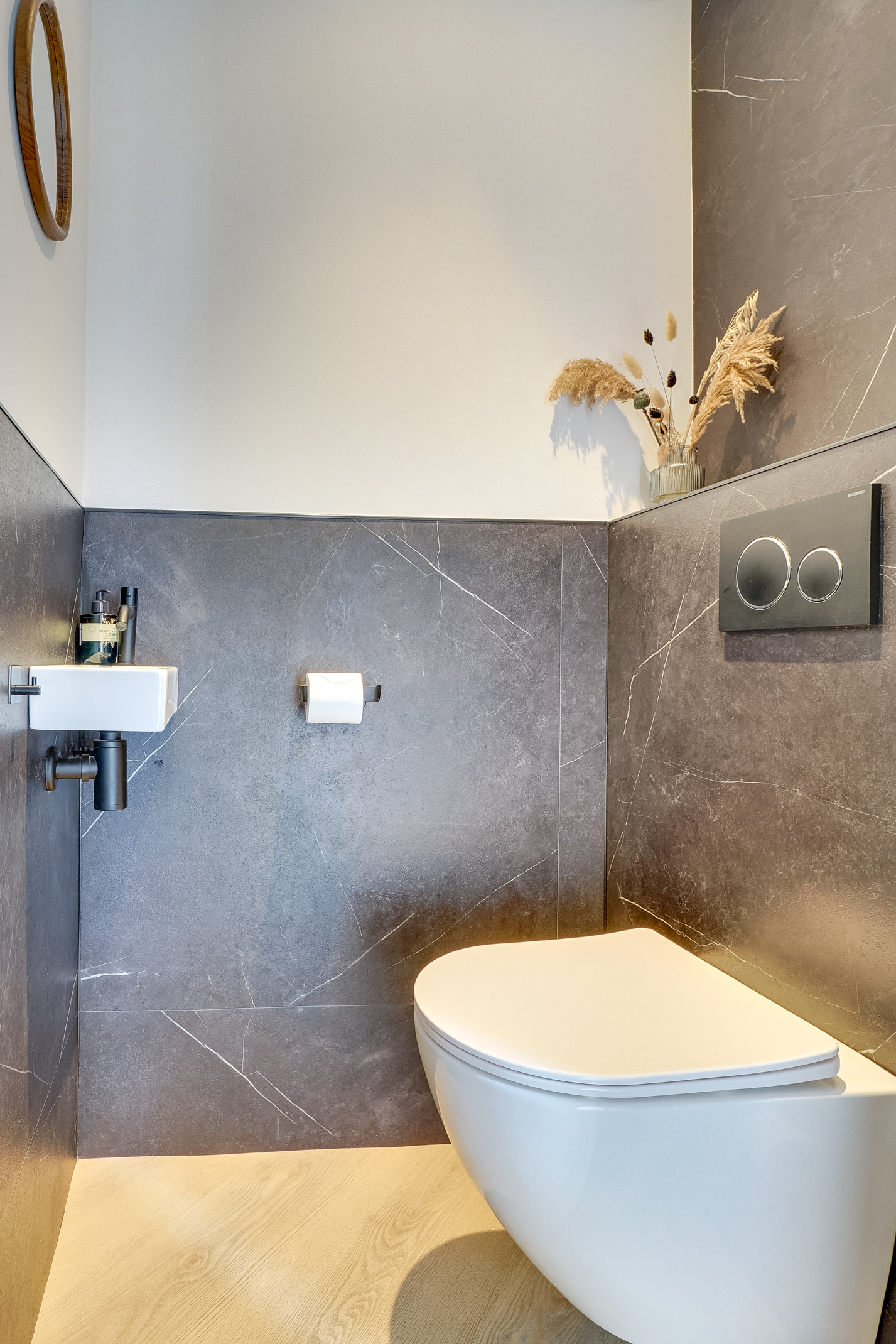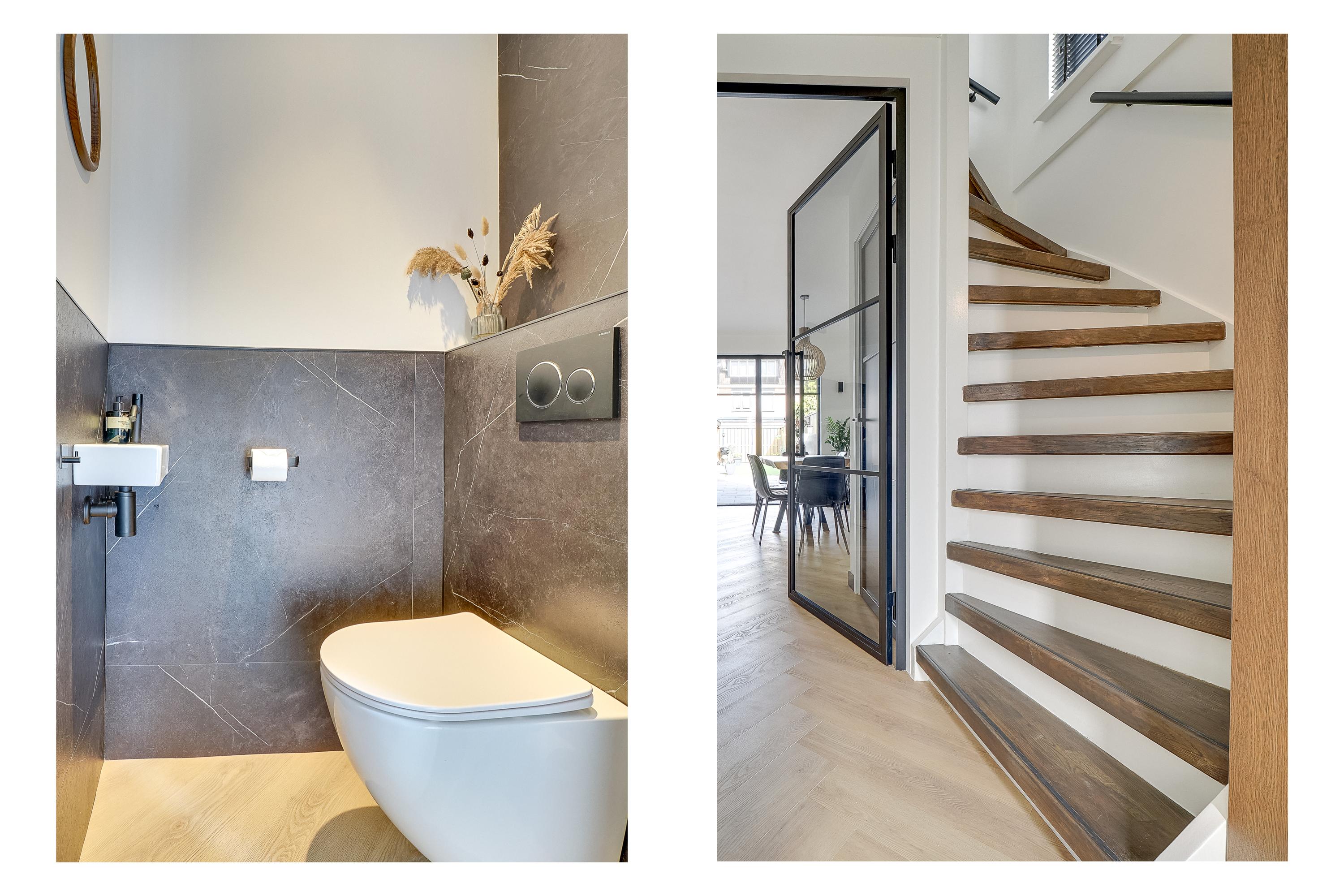 Het toilet op de begane grond is modern uitgevoerd met automatische verlichting en afzuiging.