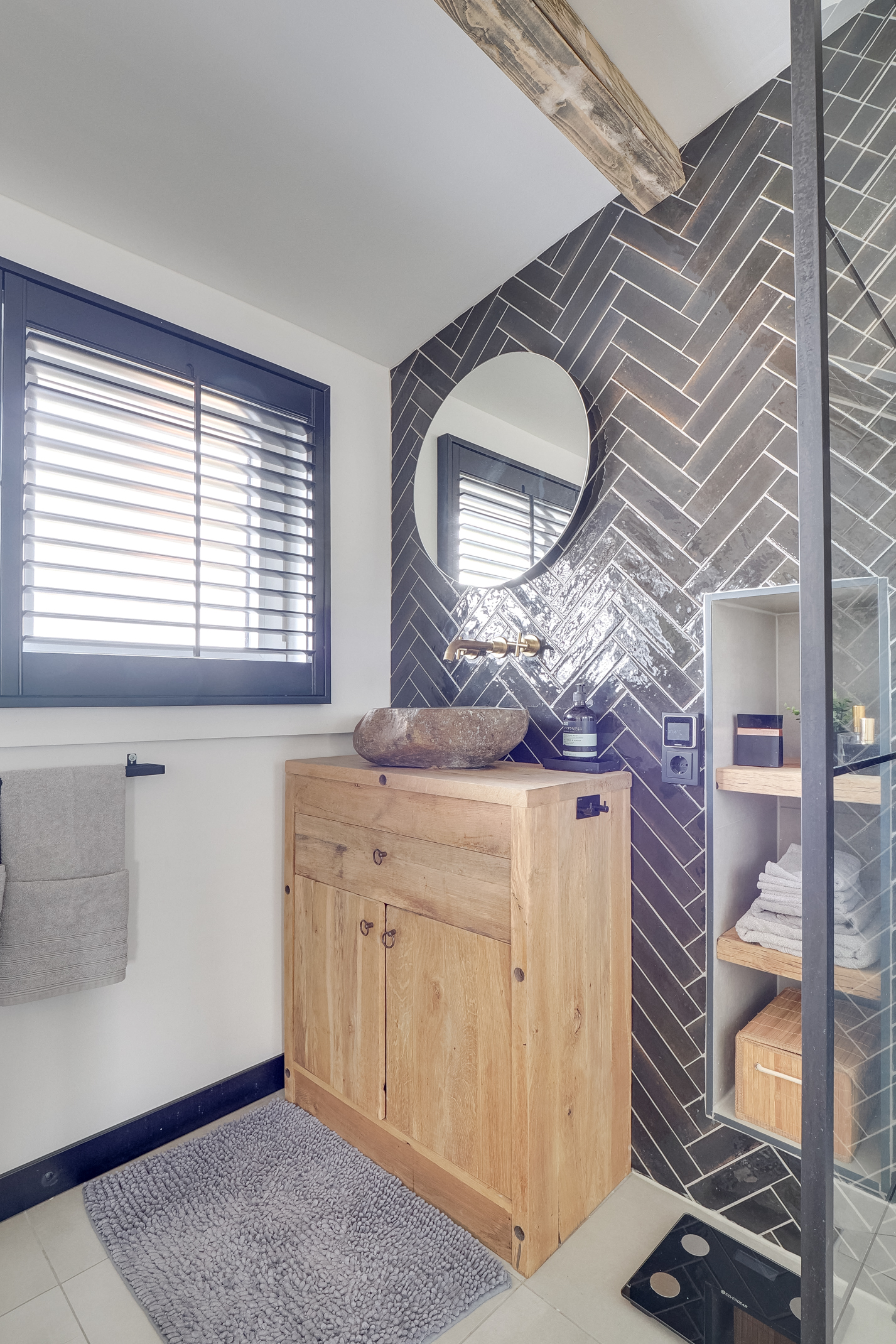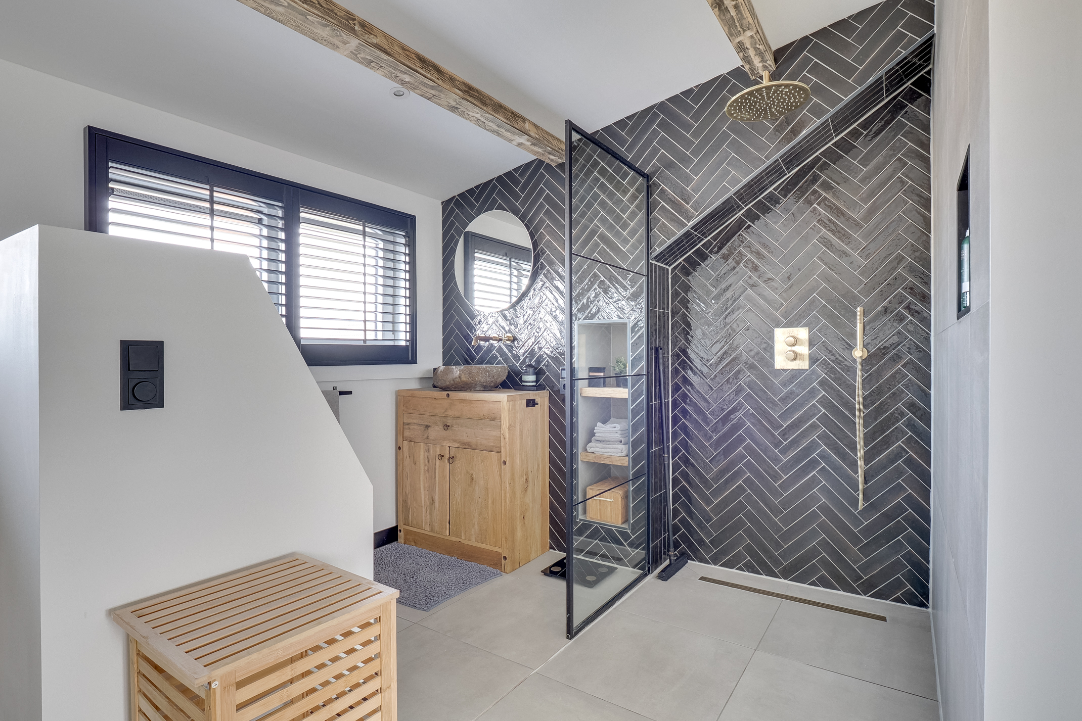 - Hoogwaardige afwerking met visgraat PVC-vloer, vloerverwarming en massief eiken trappen met verlichting